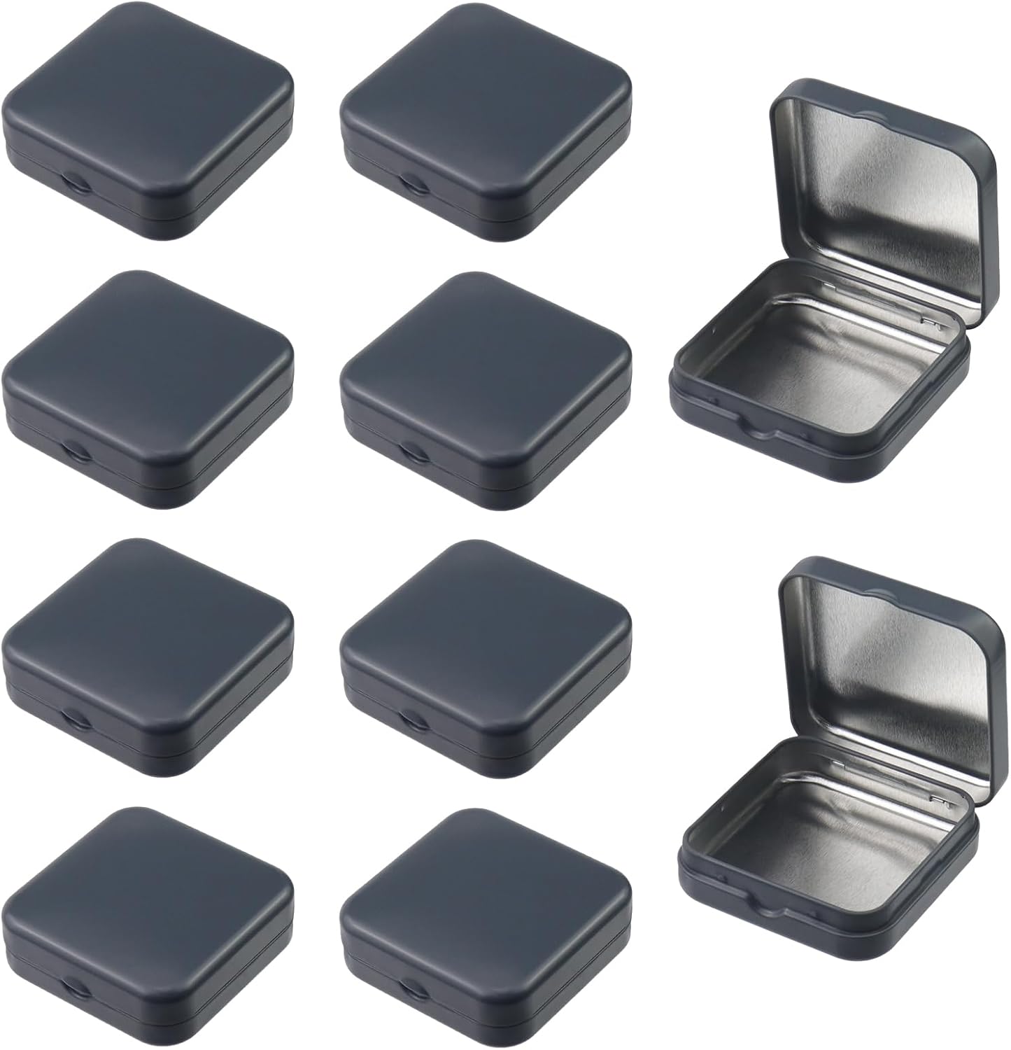 Package: A package includes 10 packs storage tin boxes, and the color is gray.
