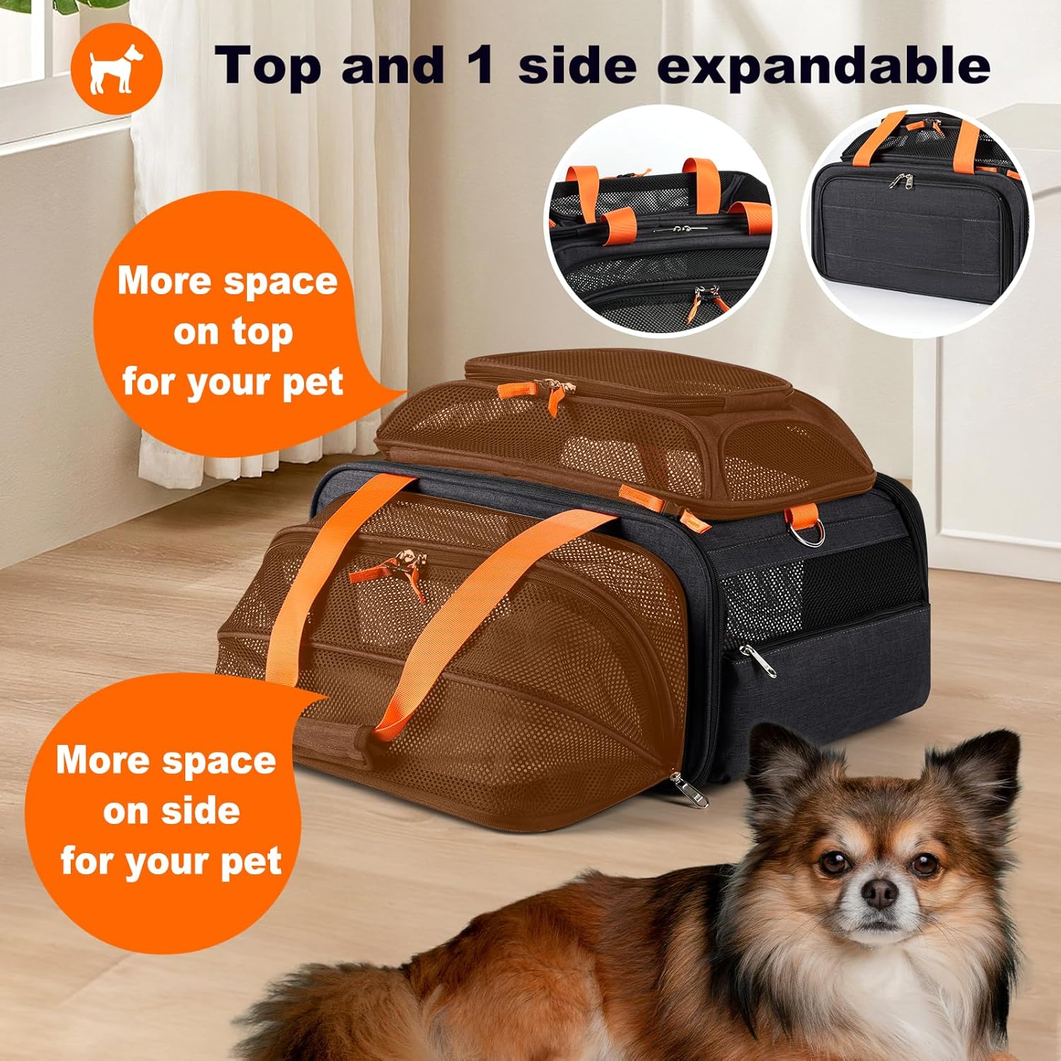 Expandable Top And Side Provide More Space(for small pet<8 lbs,length < 17”)