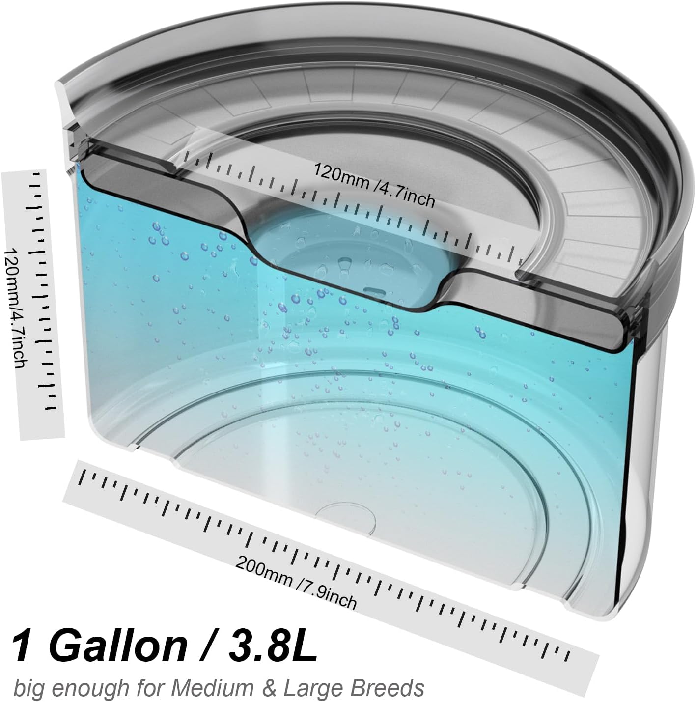 1 Gallon/3.8 L Extra Large Dog Water Bowl: 1 Gallon (3.8 L/120 oz ) large capacity is big enough for large medium dogs all day long. This no drip water bowl can slow down drinking for messy drinkers. Anti-spilling, no more water wasting