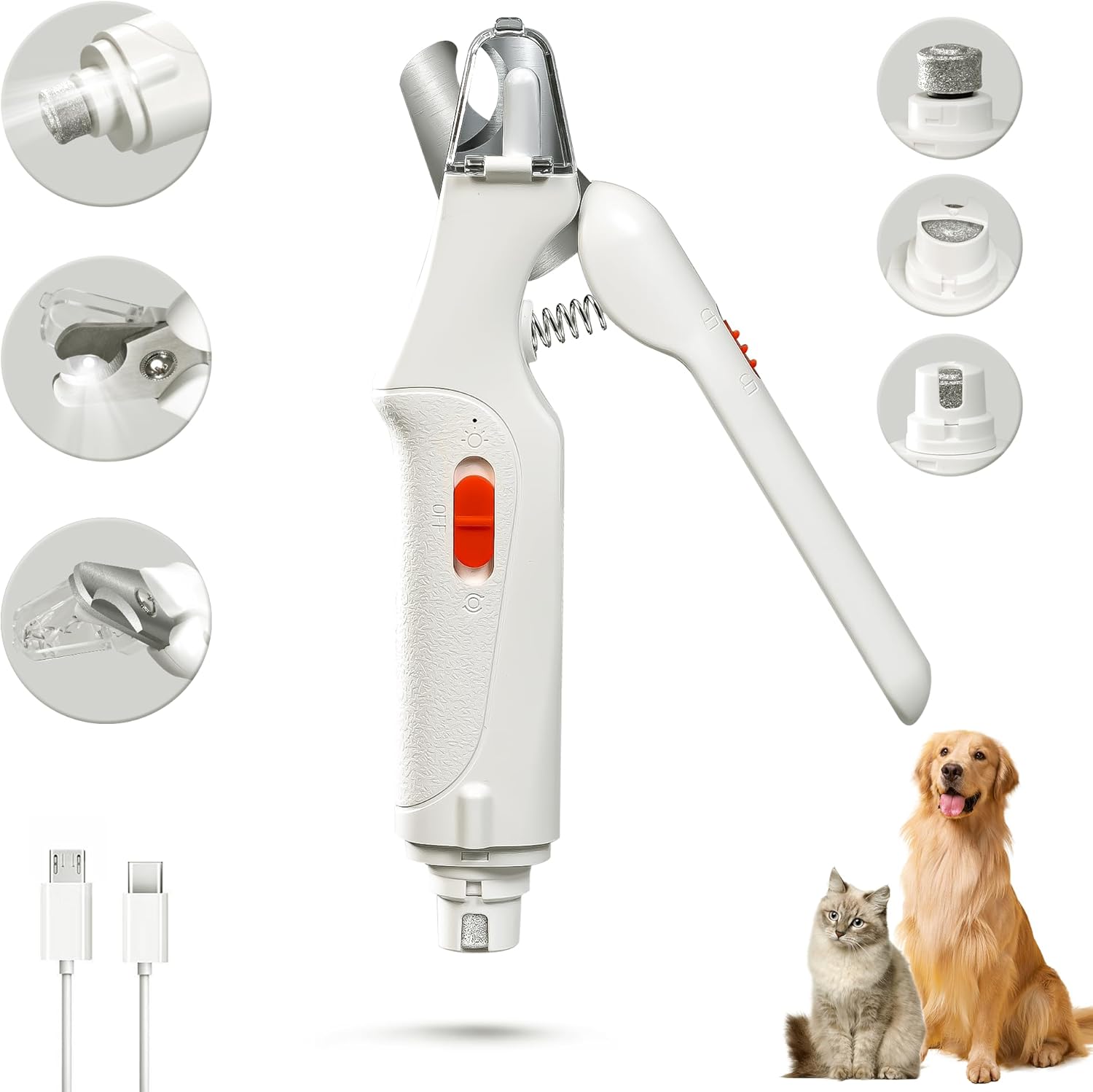 2-in-1 Cat Nail Clippers & Dog Nail Clippers Trimmers for Large Medium Small Dogs Cats Claw Trimmer Quick Sensor and Safety Guard USB Rechargeable with 2 LED Lights Dogs Nail Trimmer