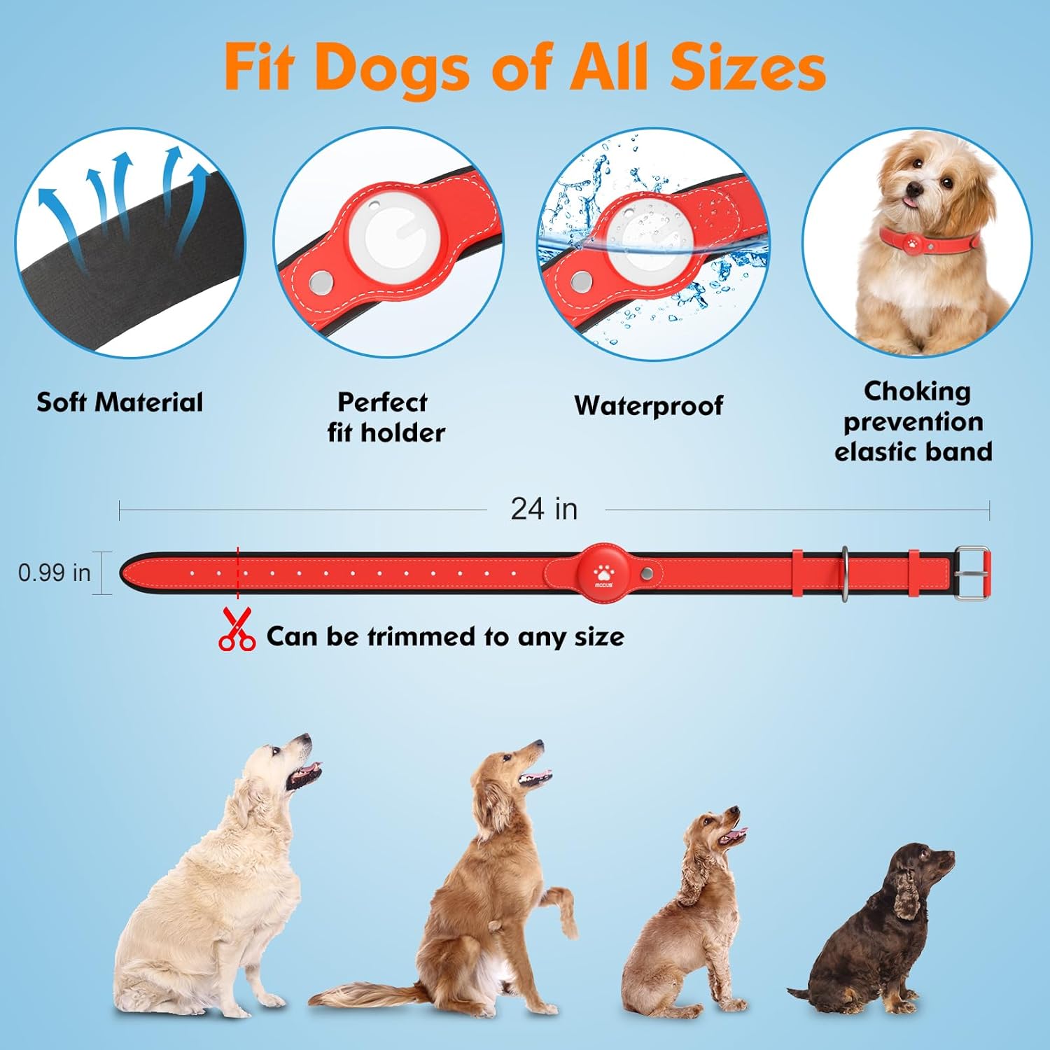 This pet tracker collar is ideal as an AirTag holder, and the adjustable design fits dogs of all sizes.