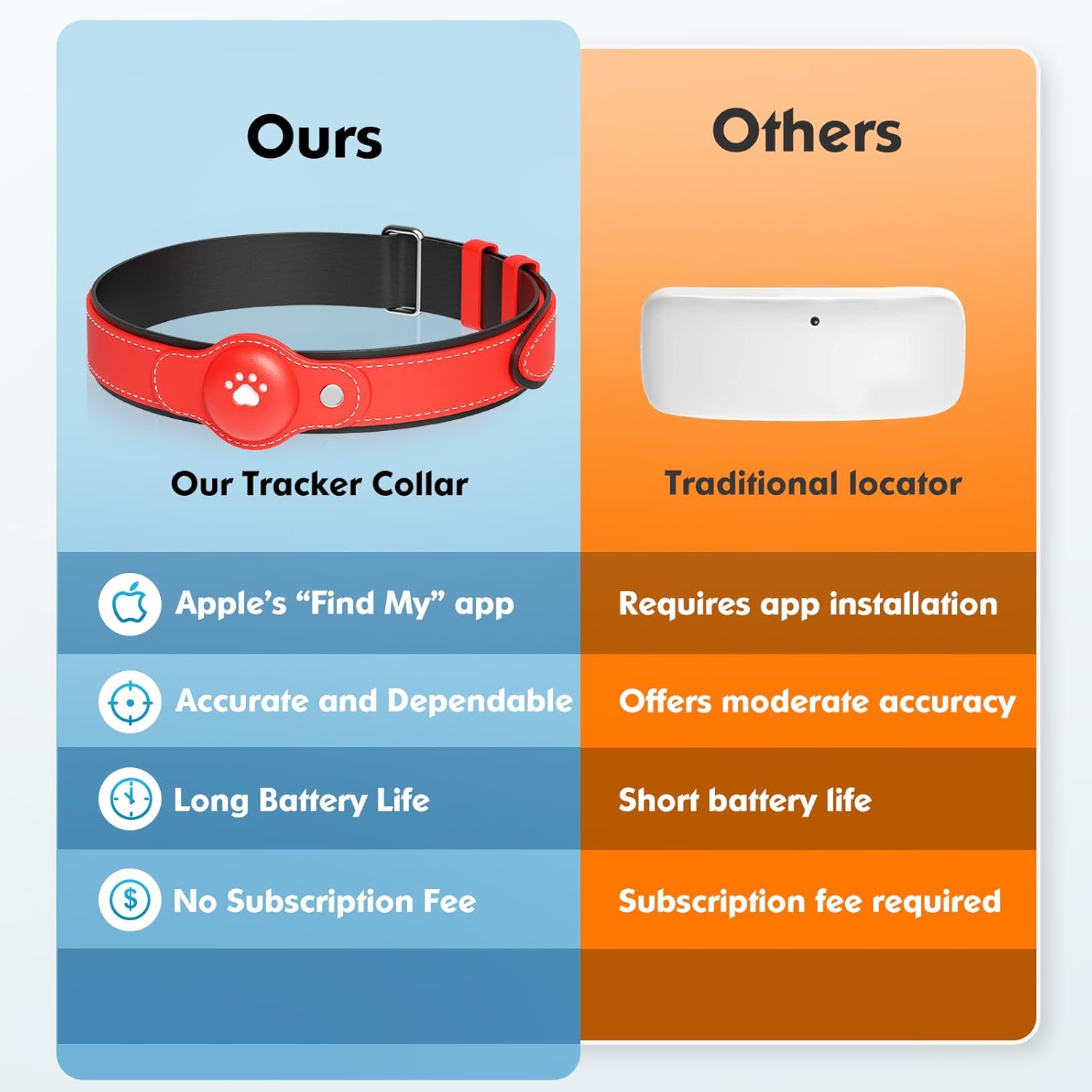 This collar includes a locator and an adjustable design, suitable only for iOS devices (iOS 14.5 and above, iPhone 6S and newer).