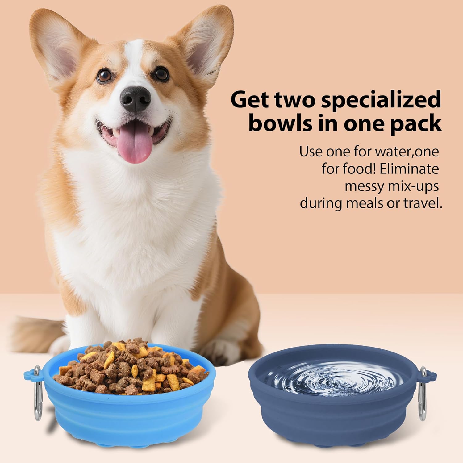 Dual-Bowl Convenience – Feed food and water simultaneously! 2-pack 16oz collapsible silicone bowls perfect for home, travel, or outdoor adventures.