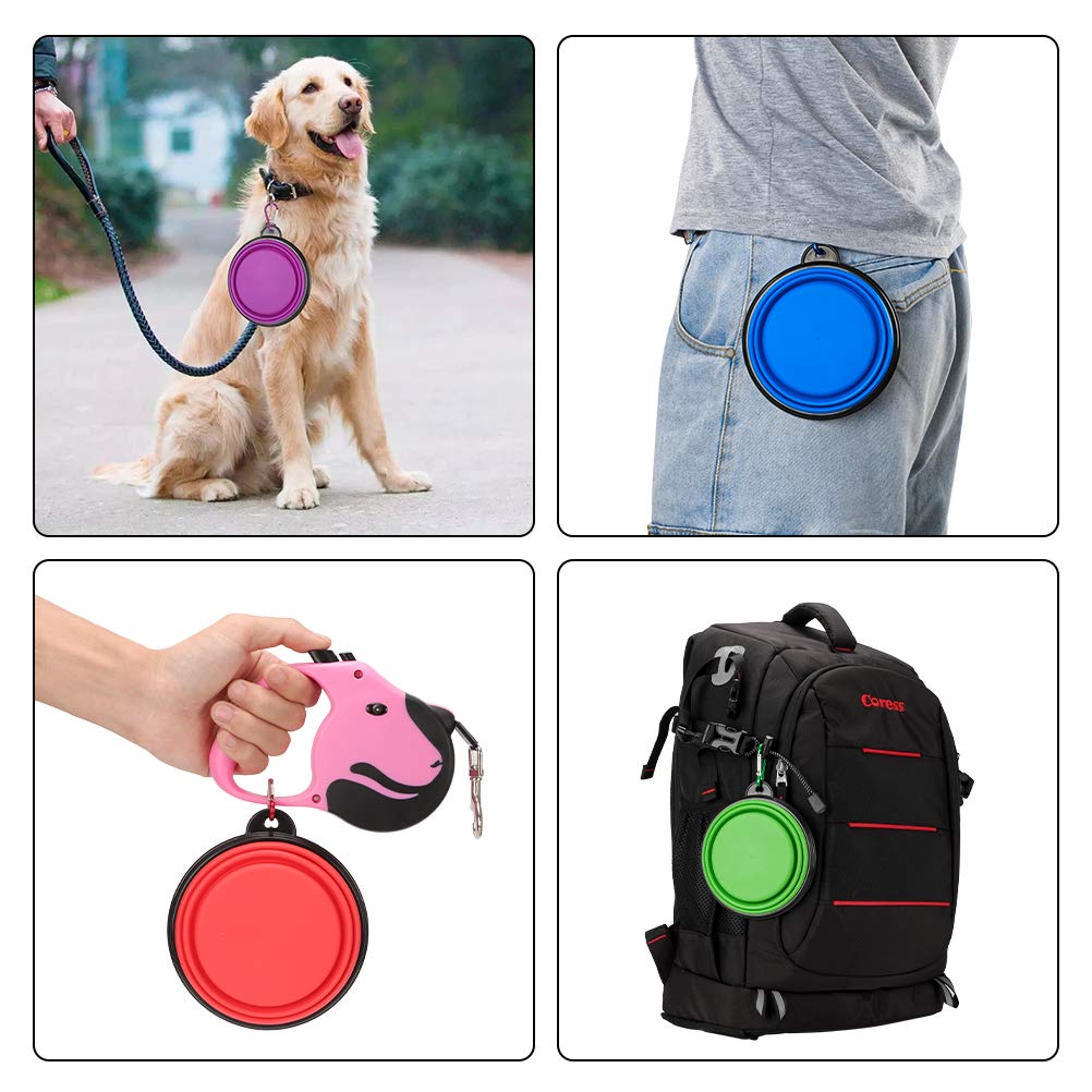 Durable, reusable and , easy for storage and transportation. The bowls include color-matching carabiner clips that can attach to belt loop, backpack, leash or other locations.