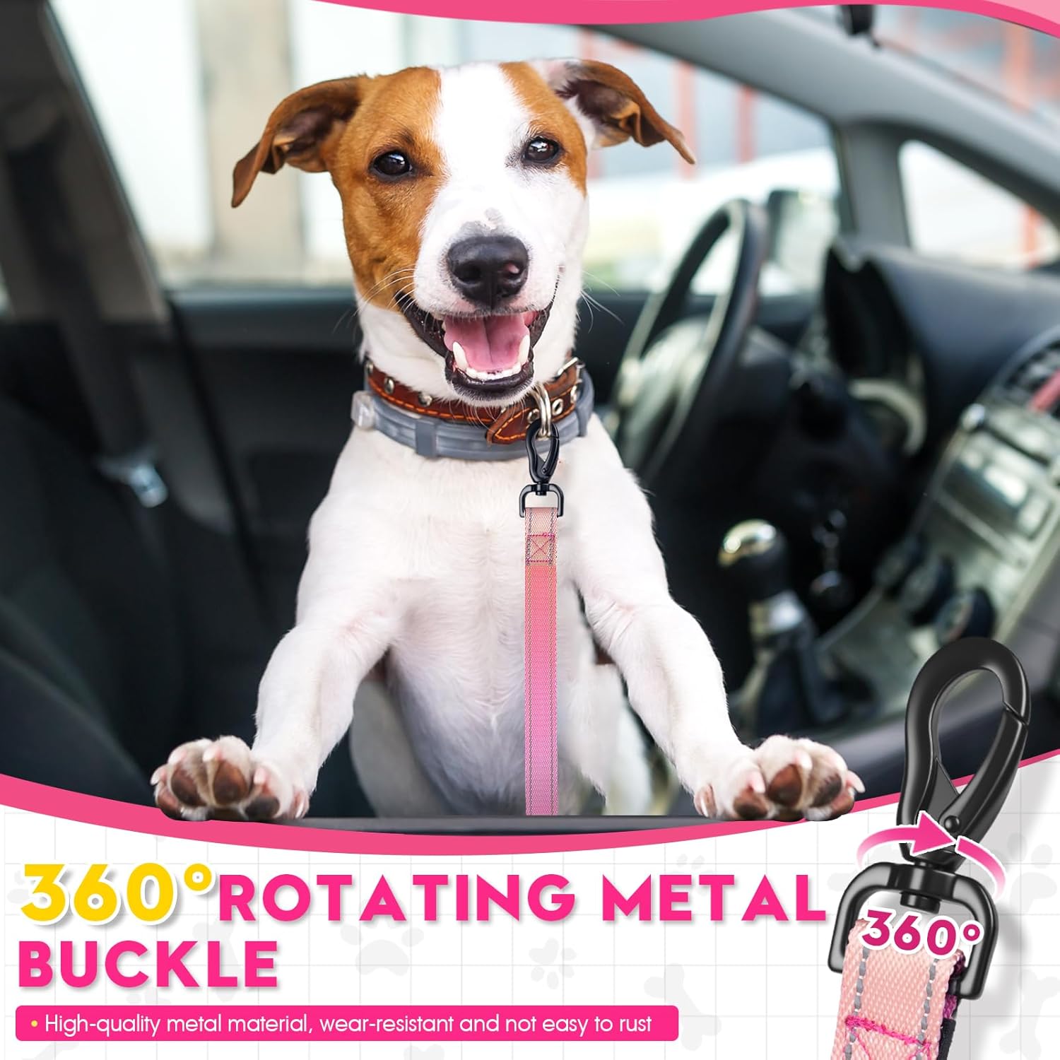 【Comfortable Travel, Free Exploration】The 360° rotating buckle seamlessly connects the chest harness/collar, allowing your dog to adjust its sitting or lying position flexibly, comfortably enjoy the view outside the window, while effectively preventing jumping around inside the car and avoiding driver distraction.