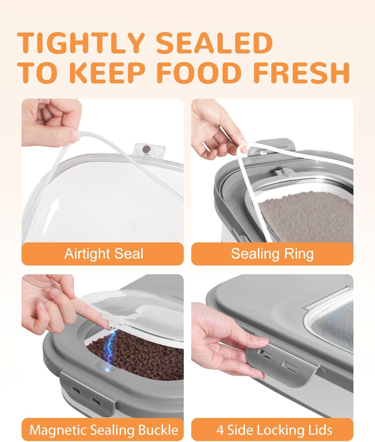SUPERIOR SEALING FOR FRESHNESS:The double airtight seals and 4 side locking lids offers excellent sealing ensures your pet’s food stays fresh longer, free from moisture