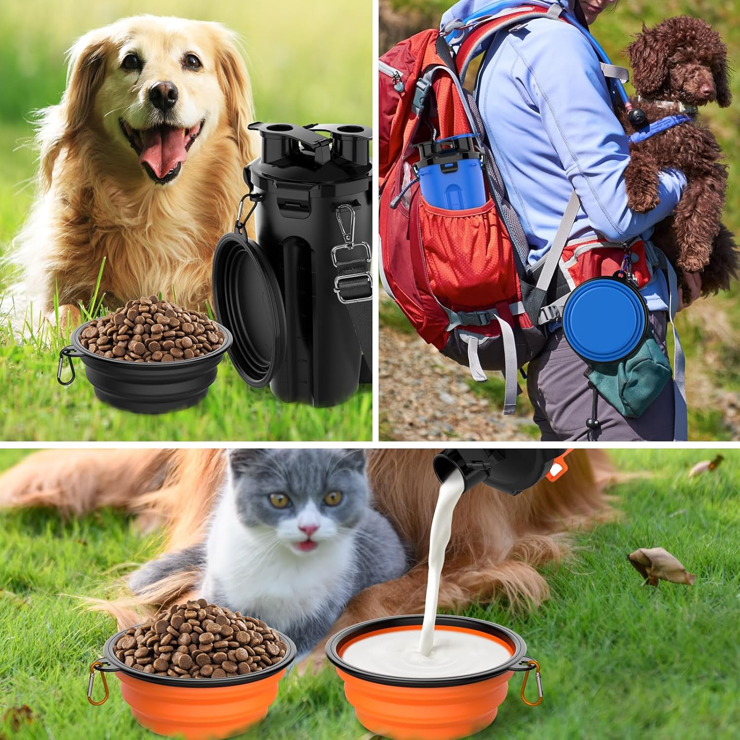 Capacity: The bottle can hold approximately 250g (8oz) of food and 350ml (12oz) of water, while the collapsible bowl has a capacity of about 12oz. Perfect for walks in the park, outdoor hikes, and traveling, this set is a convenient and practical solution for pet owners on the go.