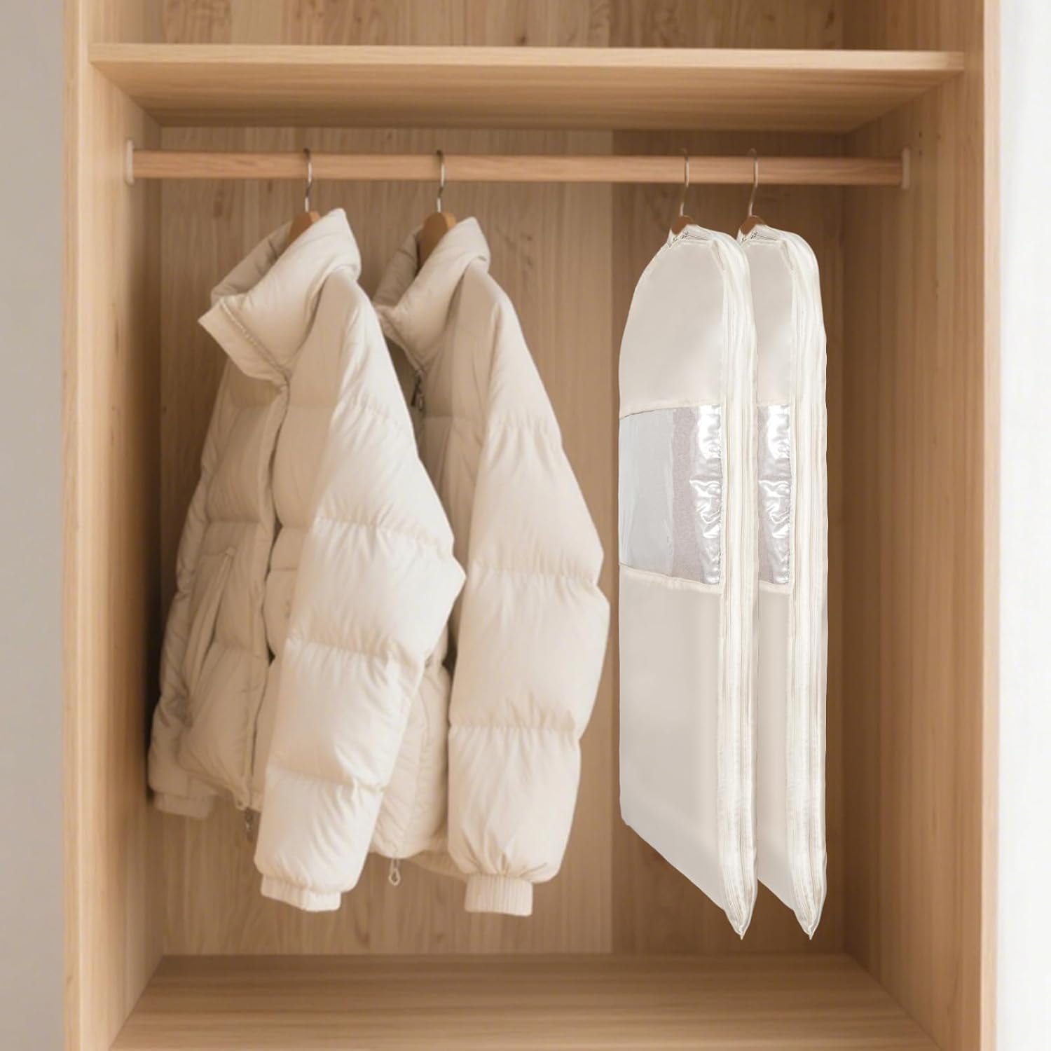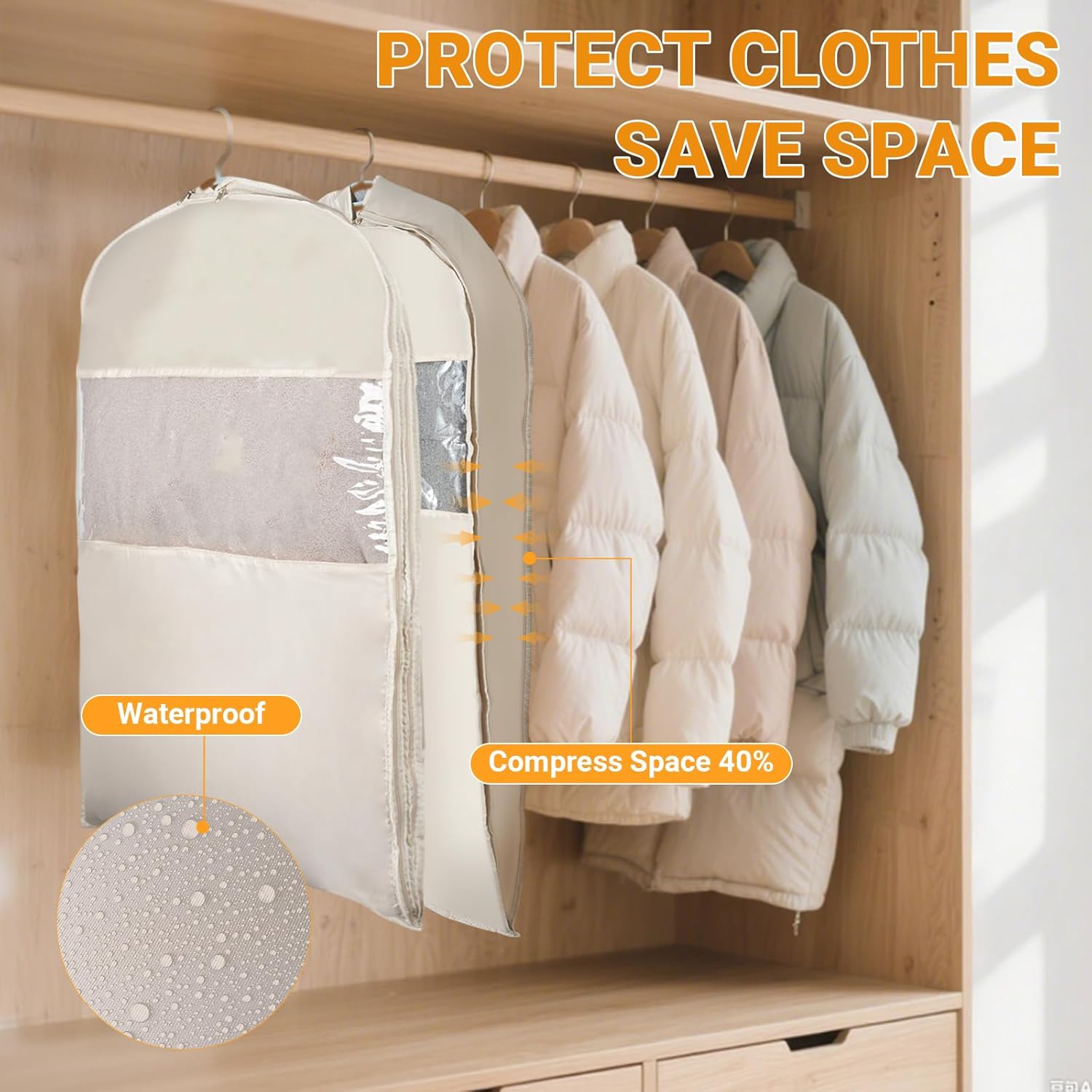 Durable Garment Bags for Hanging Clothes: Made from sturdy PEVA and polyester, these bags are waterproof, dustproof, and resist pet hair. The clear window design lets you quickly identify clothes without opening, keeping garments clean and wrinkle-free