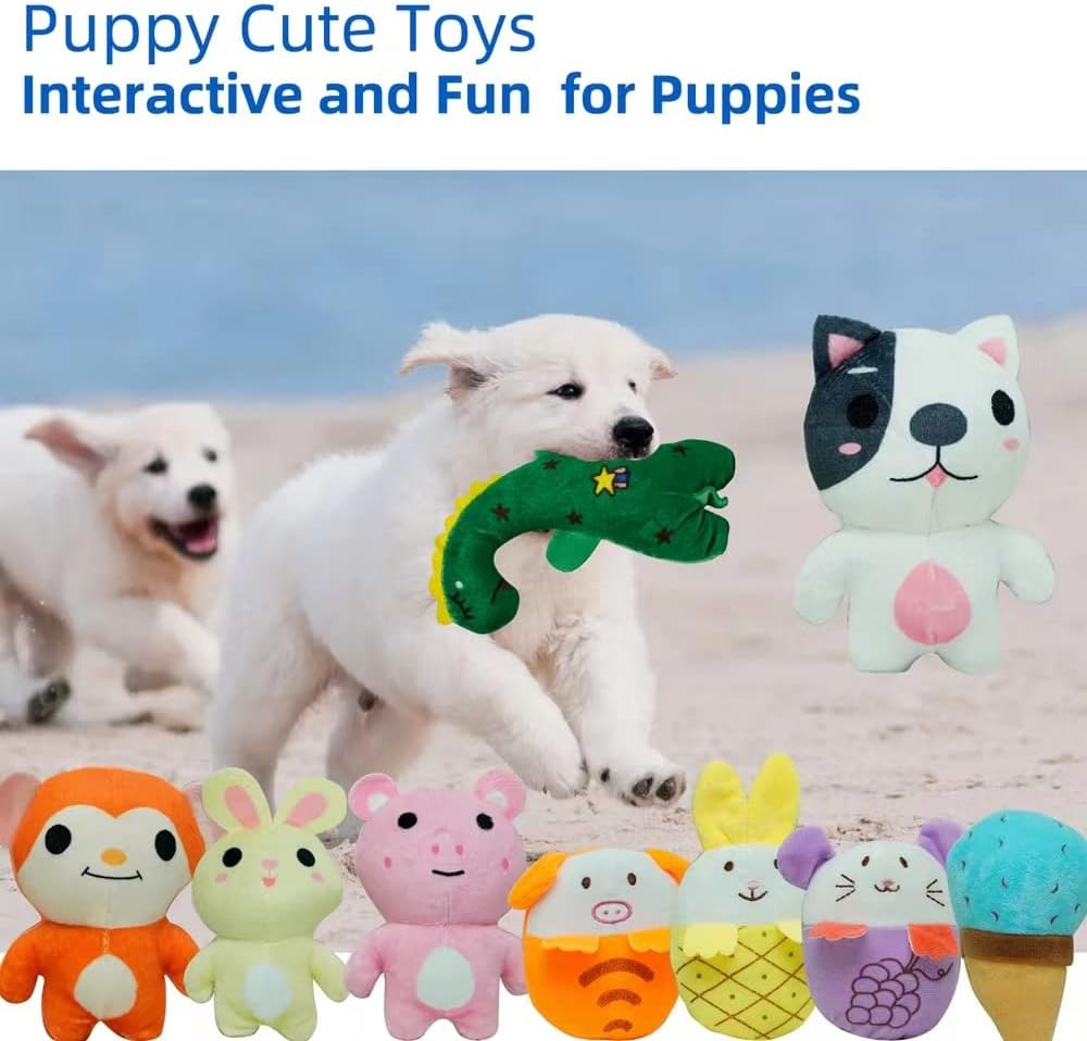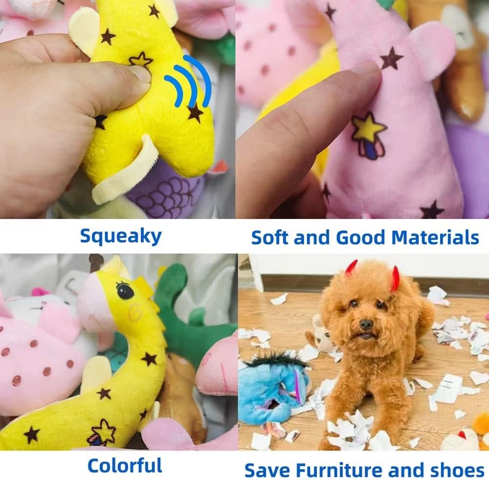 Bundle 30 Pack Dog Squeaky Toy- Multi color Plush Toys Puppy Chew Toys for Small dogs – Cute Stuffed Animal Pet Toys SetBulk Dog Toys And Unique Shapes: These puppies toys are designed in a variety of vivid shapes. Including different kinds of animals, fruits. Such as tiger, dinosaur, frog, cat, giraffe, rabbit, elephant, owl, duck, airplane, pitaya, pineapple, strawberry,etc. Bright colors and cute shapes are your pup’s favorites .Great Inexpensive Puppies Toys Pack : This dog toys bundle pack contains 30 different plush toys . Various fun in one set ! They will provide lots of fun and entertainment for your puppies and keep them busy for several months , meet different requirements of the dog’s daily life requirements .Keep pets enjoy playing : In addition to training and playing , puppies can effectively clean their teeth and maintain oral hygiene by chewing on these toys, which can also reduce puppies’ teeth grinding behavior . Relieve the discomfort of dogs when they are teething . Each toy have a squeaker inside .The funny squeaky sound will greatly decrease the loneliness feeling of your dog when you are not at home.Good Soft Stuffed Toy : These small dog toys are made of good material and plush filling . They are durable, clean, bite-resistant,good and washable.Some Note: These toys are perfect for puppies and small dogs , not recommended for aggressive chewers.
