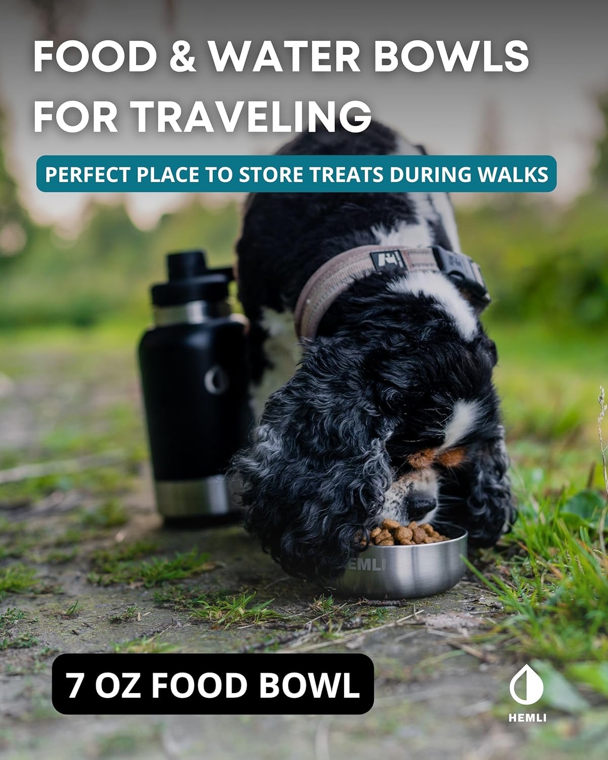 Chug Lid Included – the 32 oz capacity will be enough water for you and your dog to stay hydrated for the entire walk. The 32 oz size is perfect for puppies and dogs up to 50 lbs. The shatter-proof stainless steel construction makes this an excellent option for dog camping gear, or as a dog travel accessory.