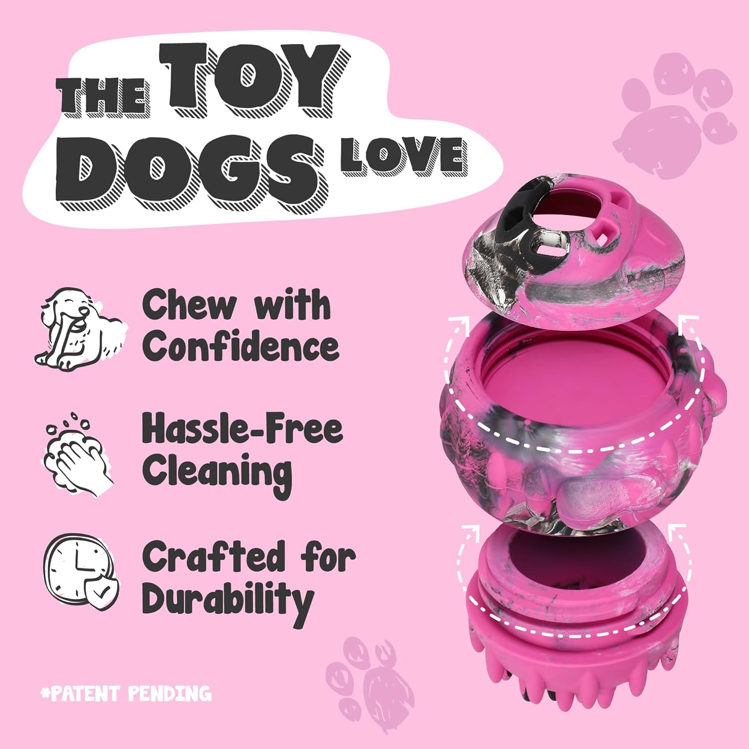 [Dog Toys to Keep Them Busy] – Fill this treat dispensing dog toy with frozen dog treats for 20-40 minutes of engaging playtime, reducing separation anxiety and giving you some well-deserved free time.