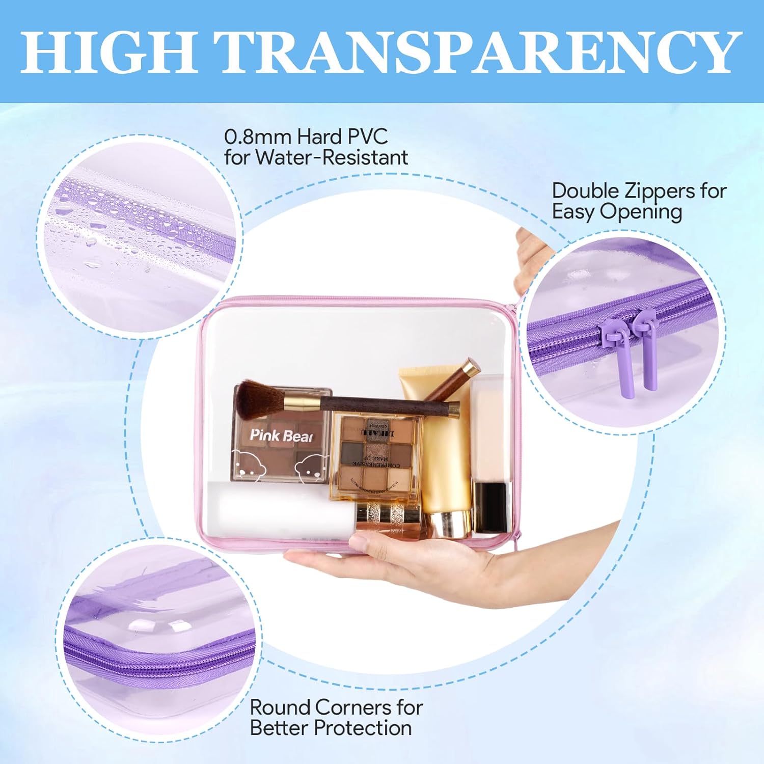 Reinforced Build for Everyday Use: Crafted from durable plastic PET, the hard sided zipper case offers strong structural protection while staying lightweight. Ideal as a clear toiletry bag or a travel pouch for fragile items, protecting your contents from dust, pressure, or spills