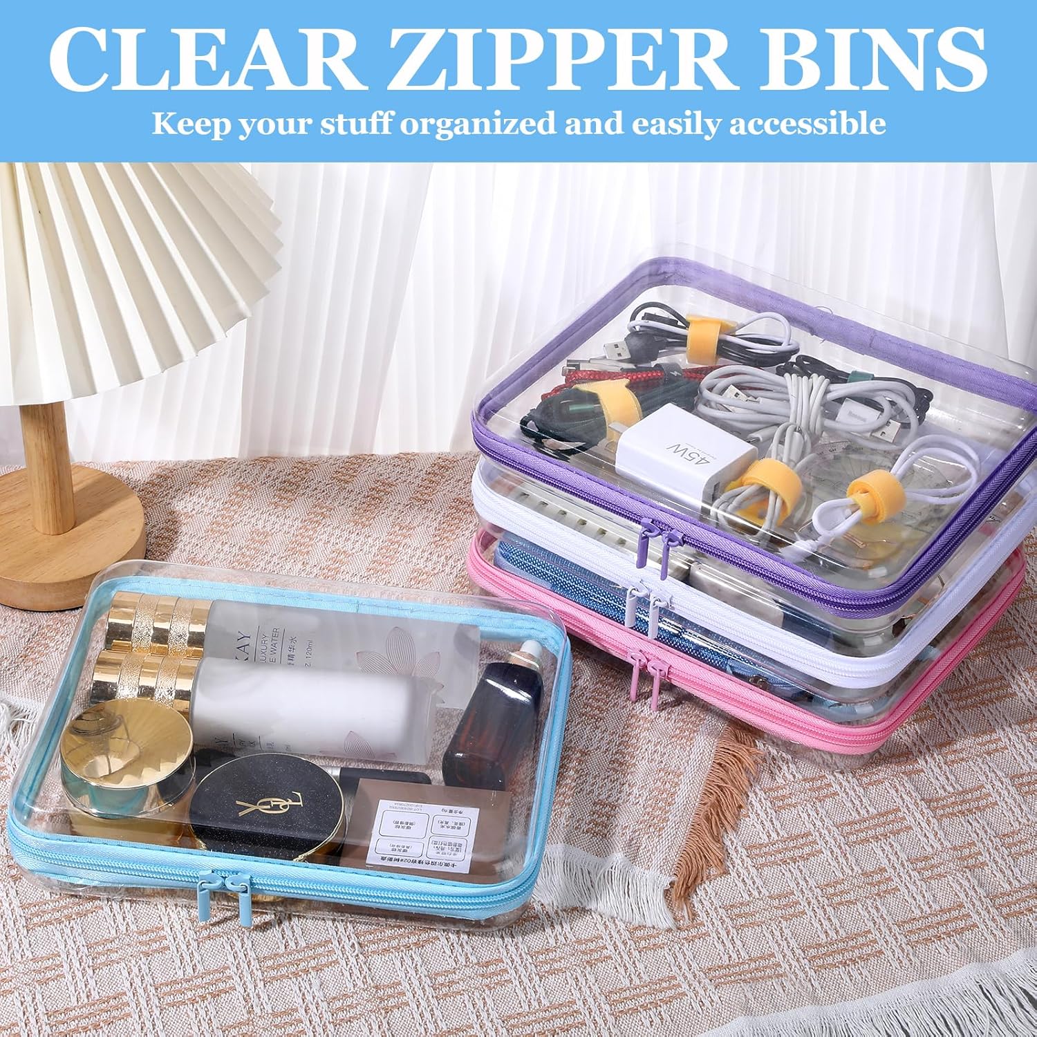 Color-Coded Convenience: This 4-pack includes pink, white, blue, and purple-ideal for sorting by use. Use one as a clear makeup bag, another as a clear hard pencil case with zippers. The bold colors help categorize everything from tech to beauty essentials