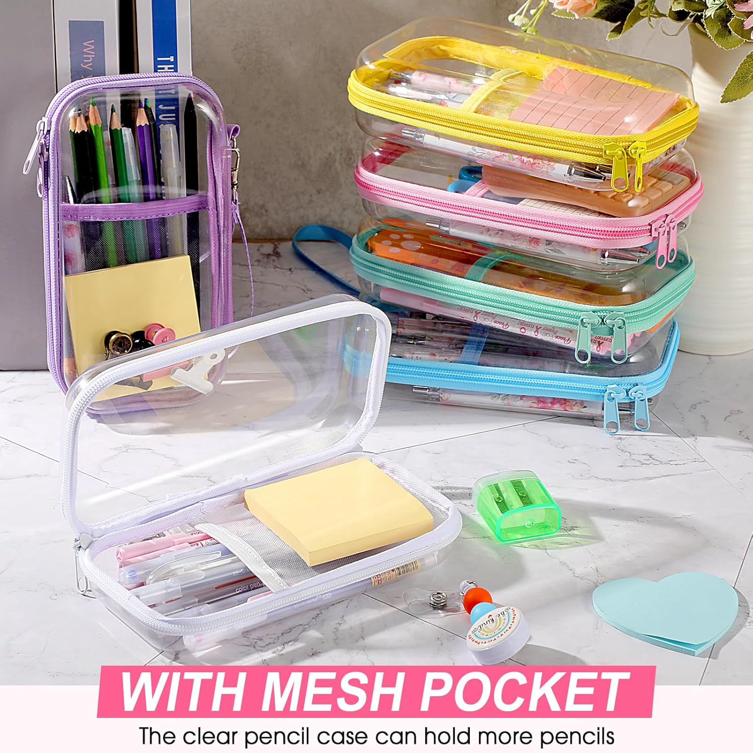 6 Pcs Clear Hard Zipper Cases Transparent Hard Sided Clear Zipper Pencil Case with Mesh Pocket for Storage Cosmetics Puzzles Toiletry Pouches Travel Organizer(Mixed Color)