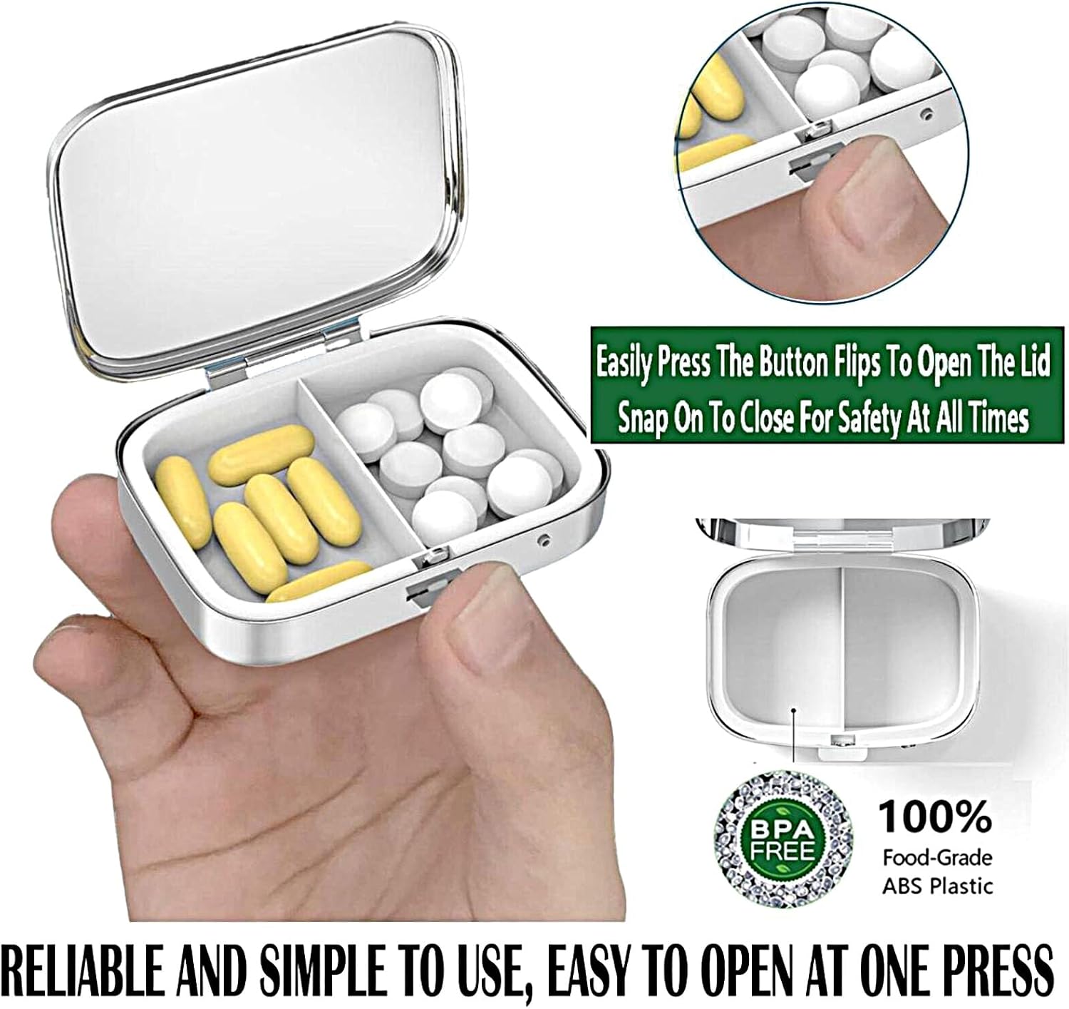 【Convenience and Portability】 ABLESKY small pill boxes are easy to open .