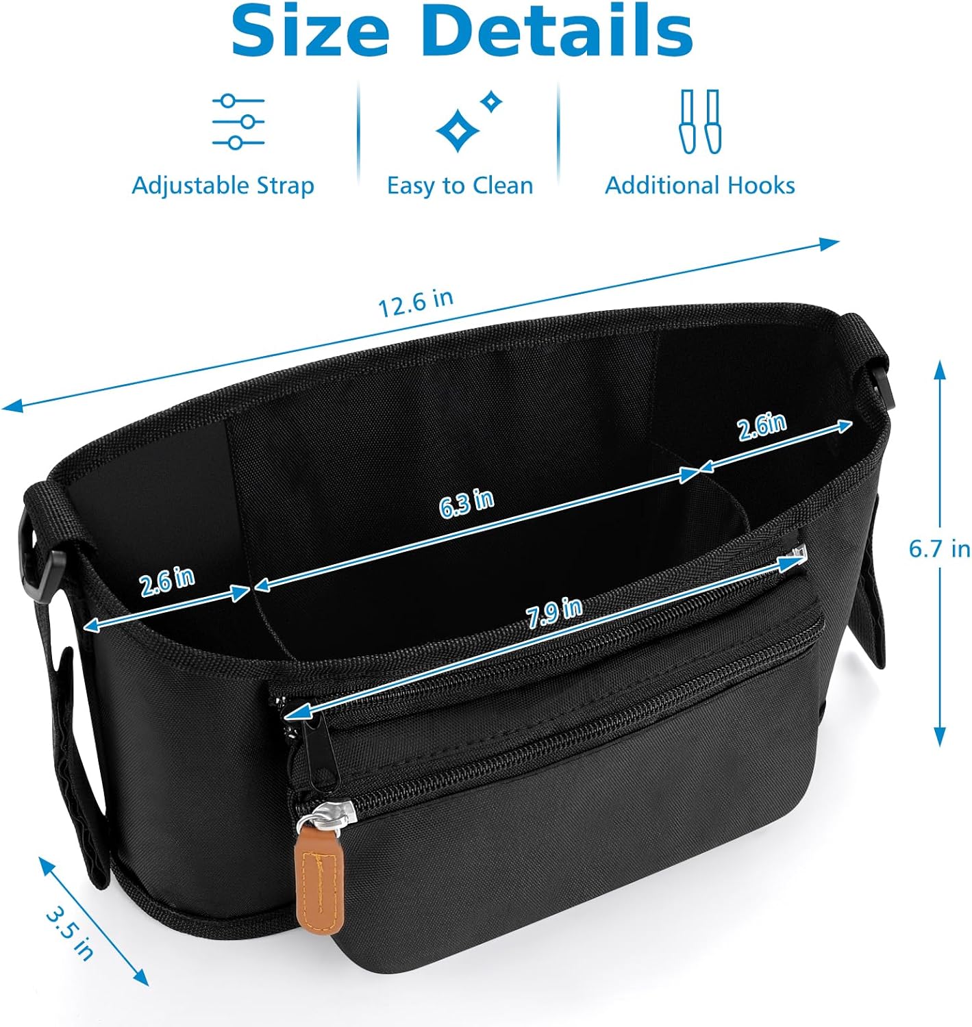 Convenient Velcro Strap: This stroller caddy designed with adjustable Velcro strap. It can be easily adjusted and securely installed on different baby strollers.