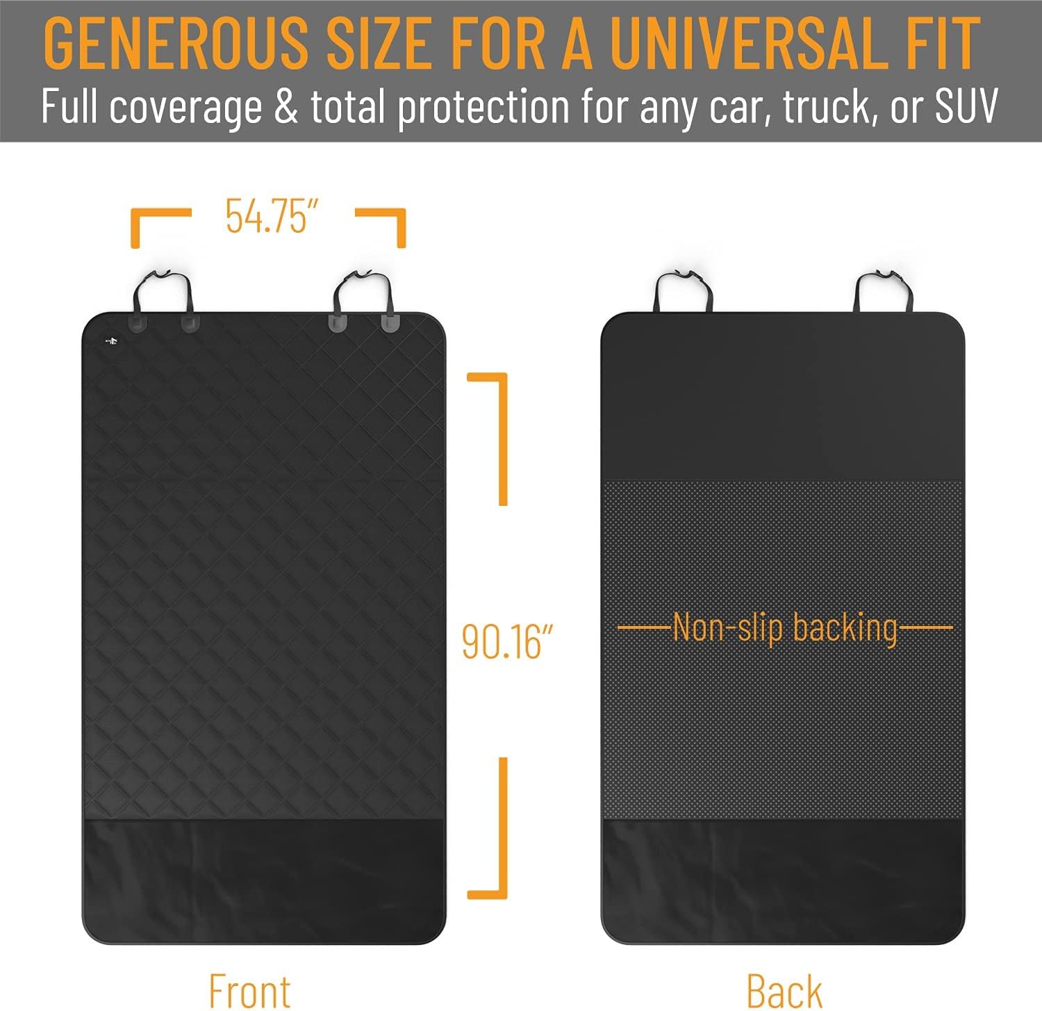 SAFETY FIRST! – Our pet cargo liner for suv uses 2 levels of security, defining a whole new level of safety: 2 heavy-duty headrest anchors and an enlarged non-slip backing keep your SUV cargo liner in place and your pet from sliding around. Be confident in a blanket car trunk protector that will stay secure and keep your pet safe.