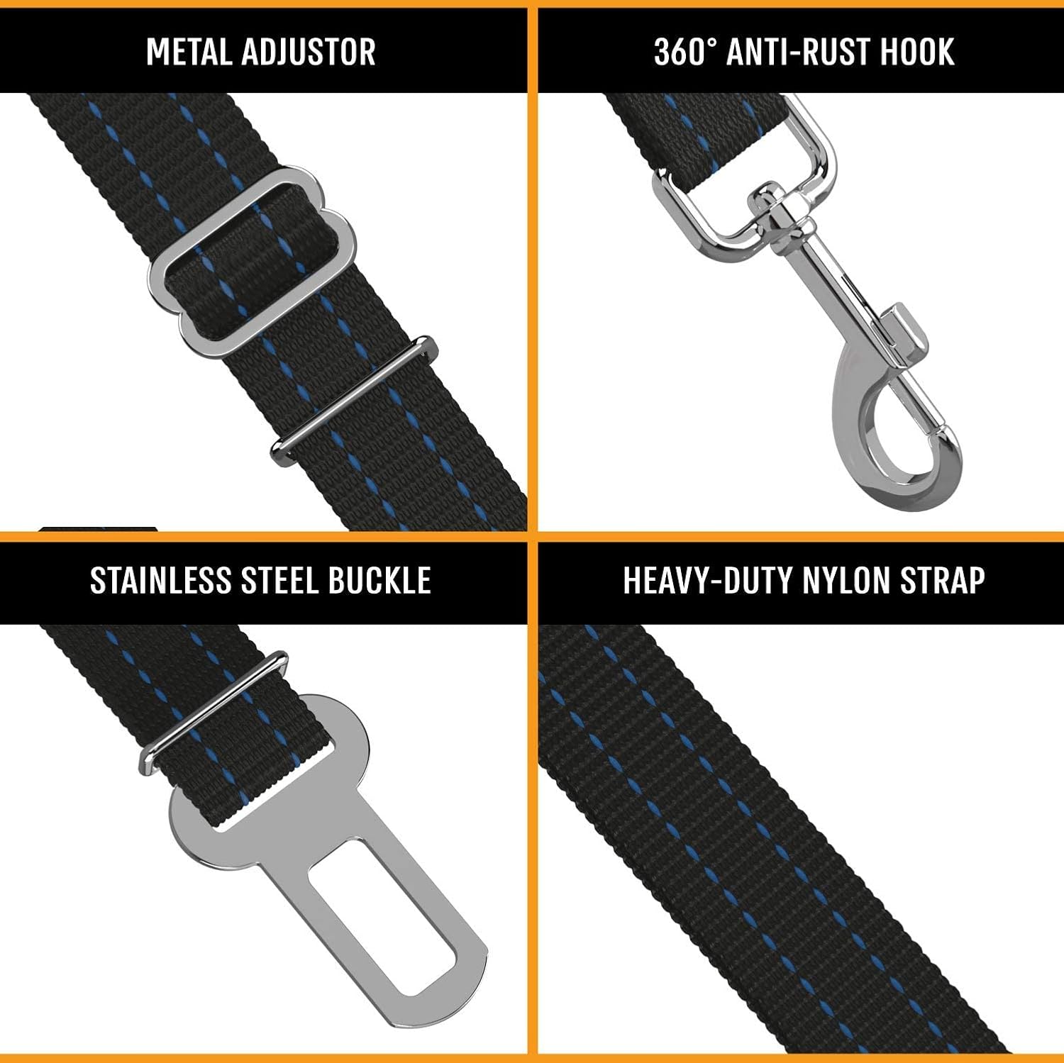 SAFETY FIRST – Our pets are a part of the family – so let’s keep them safe! Our seat belt for dogs has a 360 degree rotating clasp with adjustable straps, to ensure your pet can sit, lay, or stand comfortably