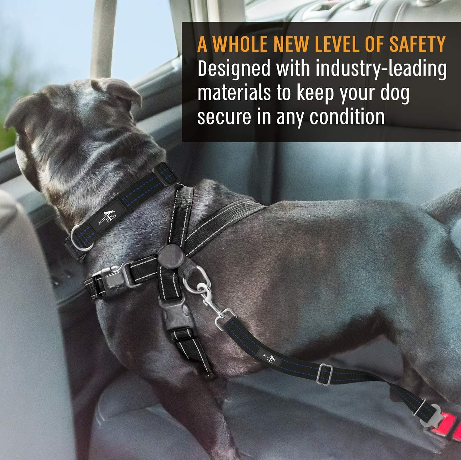 Active Pets Dog Car Seat Belt Harness, Safety Travel Restraint System for Small to Large Dogs, Crash Tested Vehicle Protection & Comfort, Blue 1pk