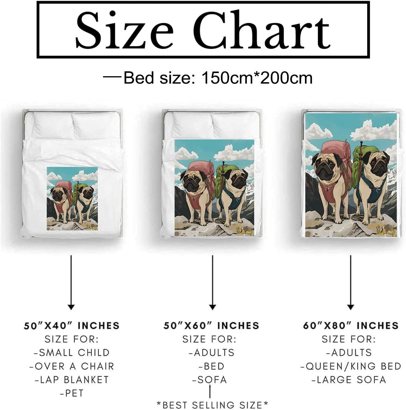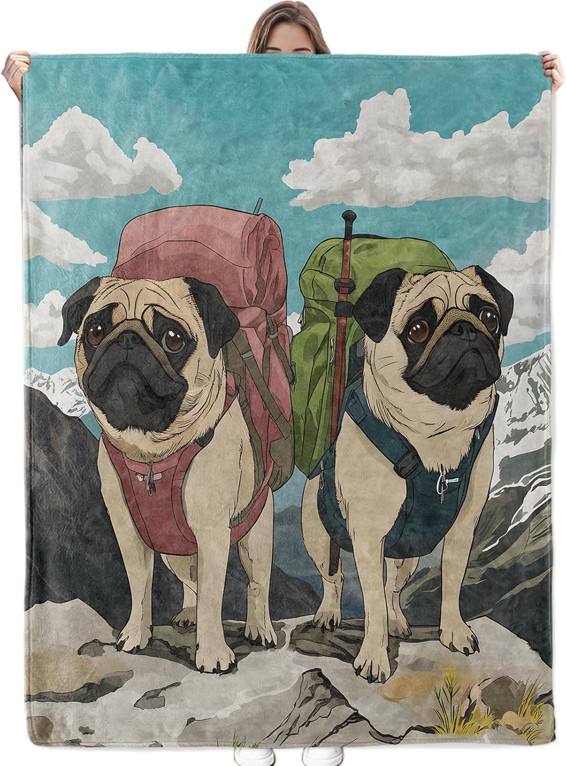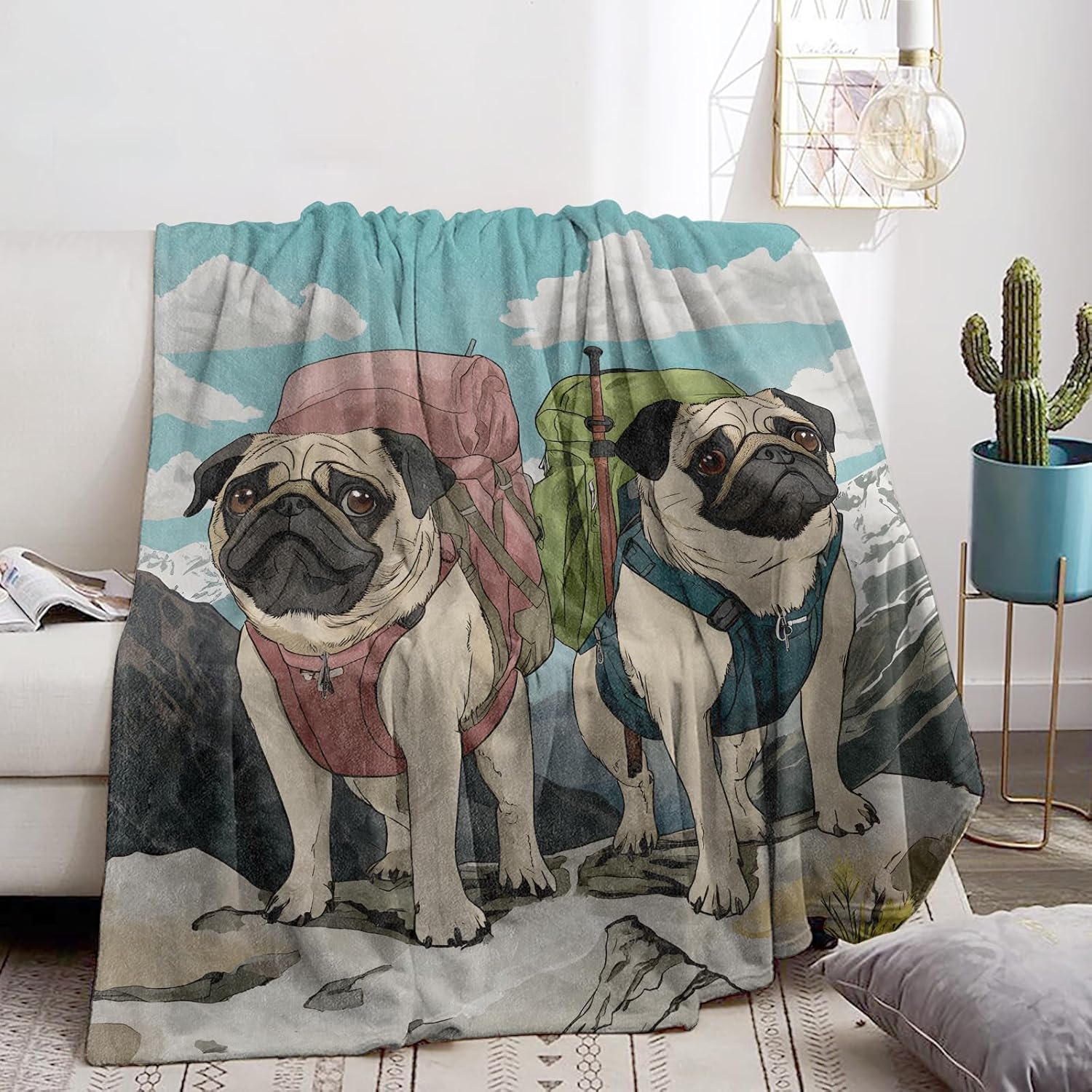 Adventure Pugs Blanket Soft Cozy Flannel Puppy Throw Blanket, Warm Yet Lightweight Cartoon Hiking Dogs Blankets for Travel, Couch, Bed, for Adults Kids Women, Fuzzy Outdoor Comfort Wrap 60″×50″
