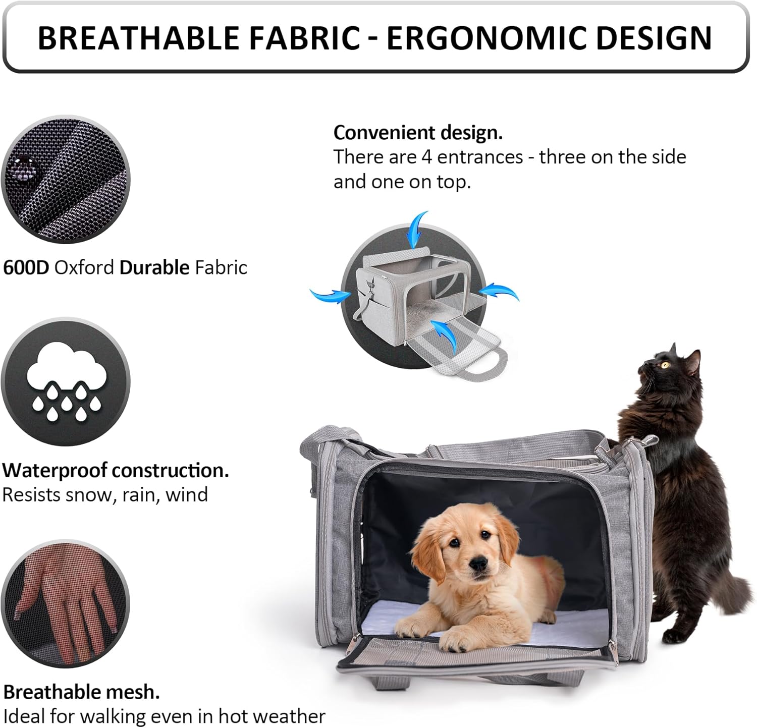 Stylish carrier for cats and medium dogs – This pet carrier can also be used as a puppy carrier and is suitable for those who are looking for carriers for small dogs or medium cats. It is perfect for your lifestyle.