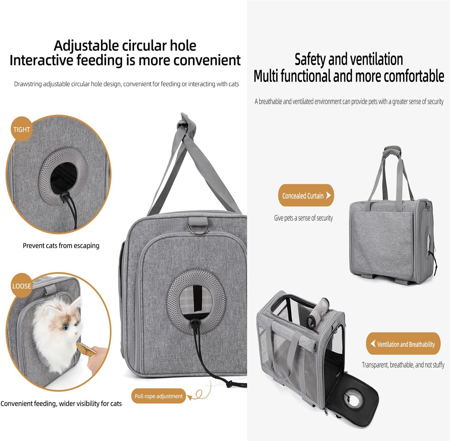【Quick-Access Side Window】Stress-Free Feeding & Interaction – Adjustable Zipper Window (2.5”-5”): Safely offer treats or soothe pets without unzipping the main compartment – perfect for flights, camping, or vet visits. – Escape-Proof Design: Magnetic-sealed closure blocks accidental openings during transport.