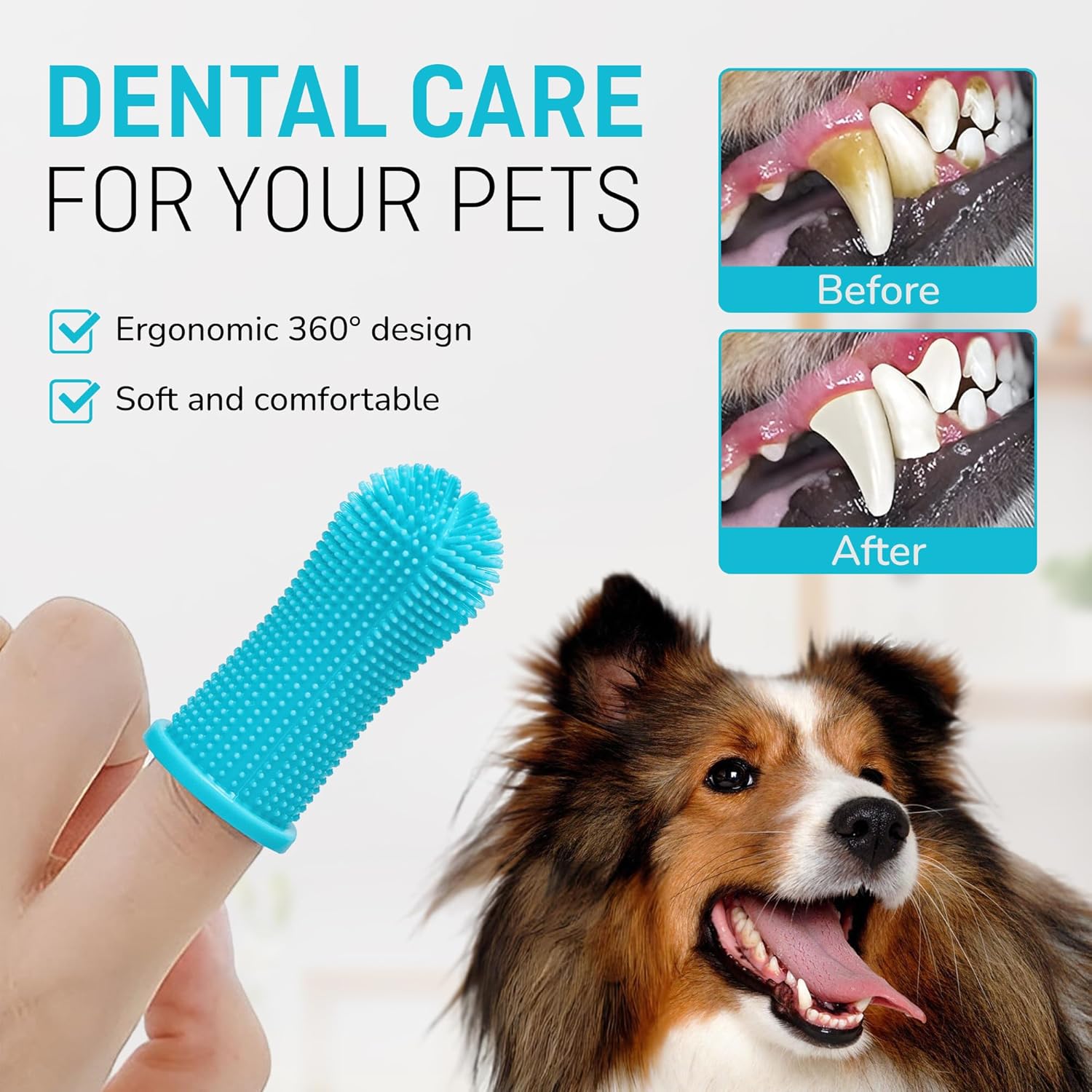 Finger brush for dogs teeth: Innovative design to clean teeth; the finger brush is perfect for cleaning your dog’s teeth and maintaining their oral health, made of soft and flexible silicone; the brush is soft and does not cause irritation in the dog’s gums, easy to use; simply place the brush on your finger and clean your dog’s teeth, helps remove plaque and tartar; reducing the risk of oral diseases