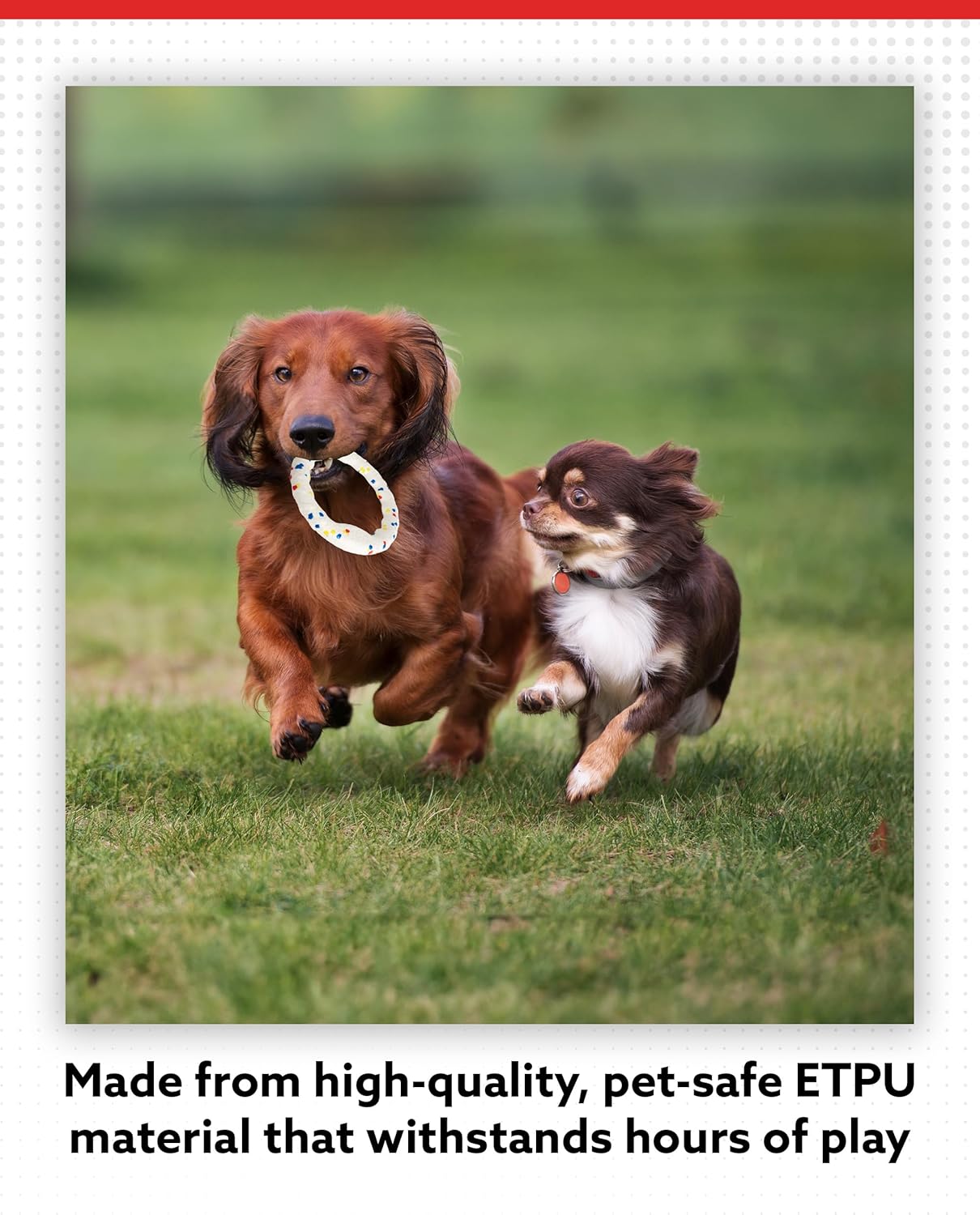 Great for Pet Owners: Designed for interactive fun, the Small Chomp! Ring is ideal for small dogs, while the Large Chomp! Ring is built to withstand bigger, stronger chewers. The design of our large and small dog chew toys makes them a safe and entertaining option for light play, while also serving as unique novelty items for pet-themed gifts.