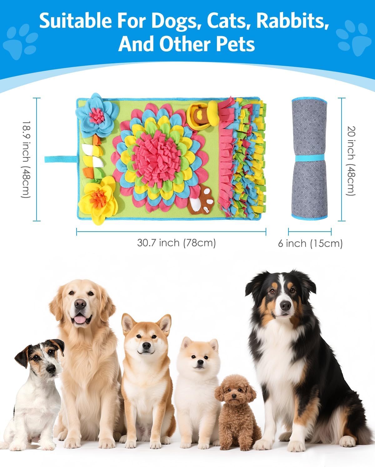 【Extra Large Snuffle Mat for Dogs, Cats & Small Pets】Sized at 31×19 inches, this snuffle mat fits small to medium dogs, cats, rabbits, and other small animals. Perfect for training, playtime, and reducing destructive behavior, it’s a versatile pet activity mat for all ages (not recommended for aggressive chewers)