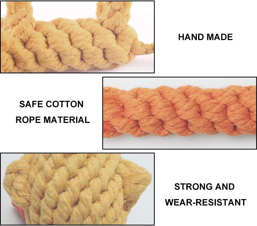 Strong cotton: cotton rope dog toys, 100% hand woven lion shaped pet dog toys. Washable, environmentally friendly and tightly knit. Dog rope toys are safe to chew, toss, interact and have fun because they don’t have any toxic plastic or rubber parts. These teeth cleaning toys last longer than typical squeaky toys