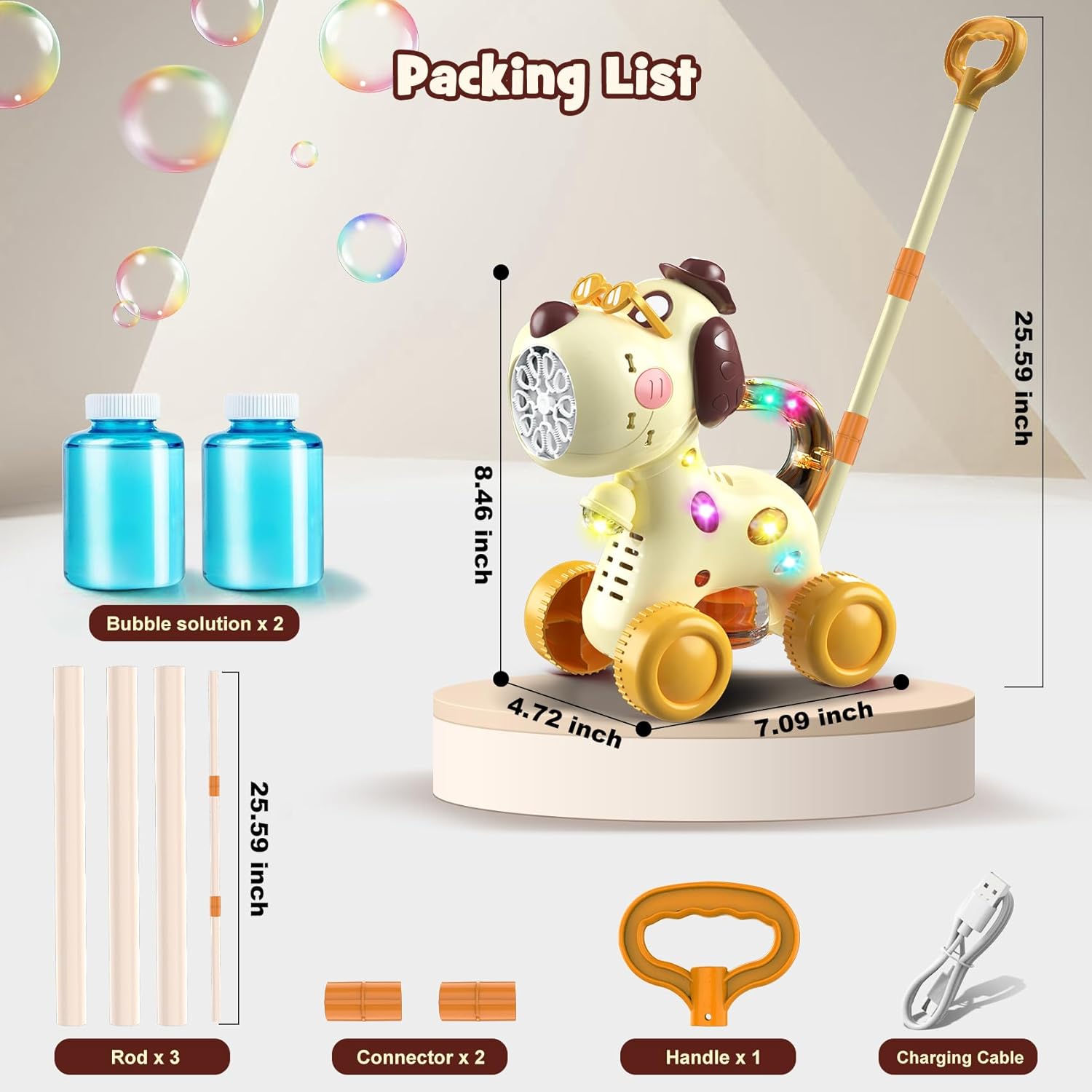 Lights Up for Exciting Play: With vibrant flashing lights, this dog-themed bubble maker adds a magical touch to any occasion. Whether it’s a birthday party, family event, or festival like Halloween, its colorful bubble show with light effects delights toddlers and kids alike.