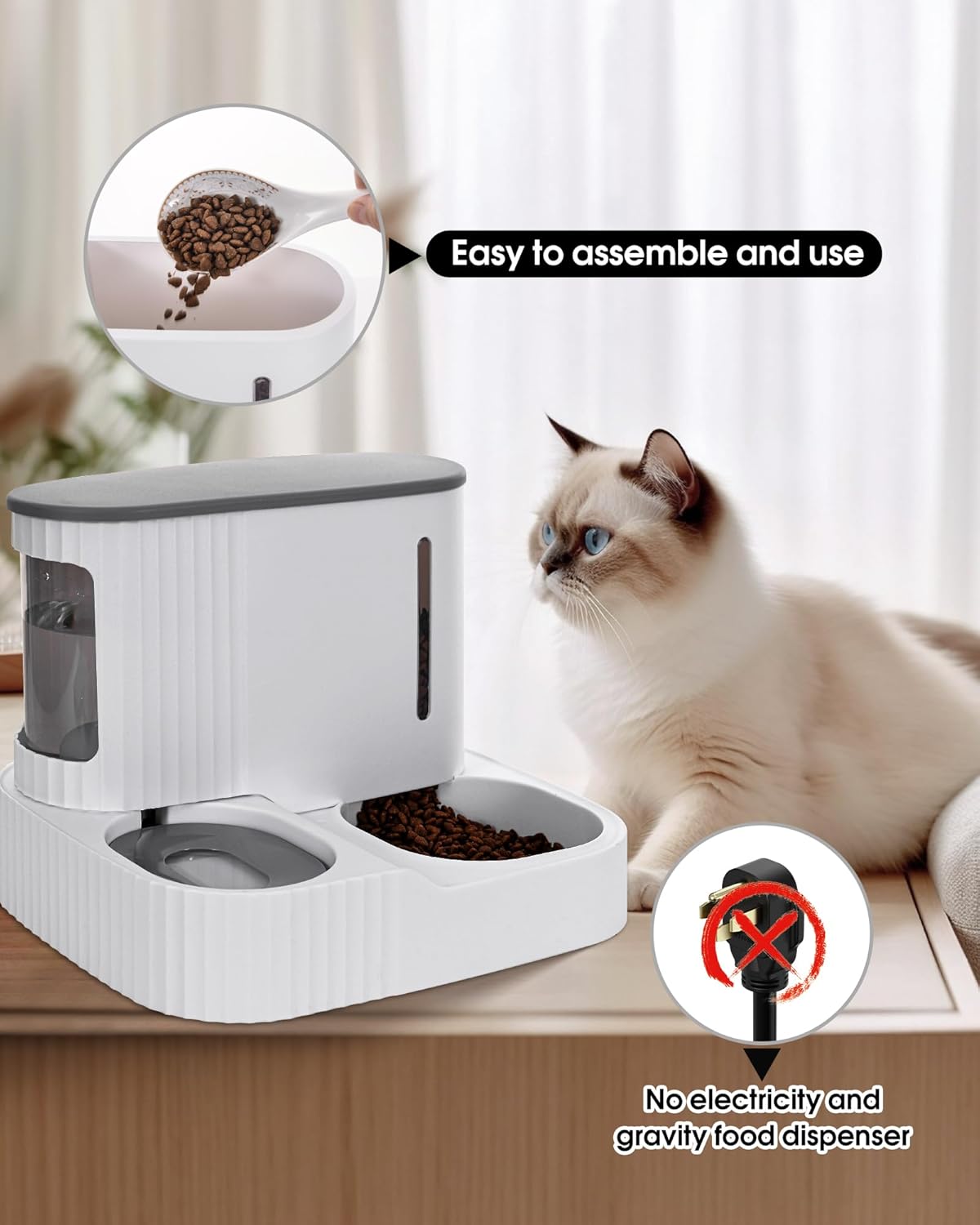 [Fashion Design]: This slow cat dog gravity dry food and water dispenser set is made of ABS+PET for durability and safety. Roman column motifs on automatic cat feeders and water dispensers give it an elegant touch, allowing it to decorate your floor like a work of art.