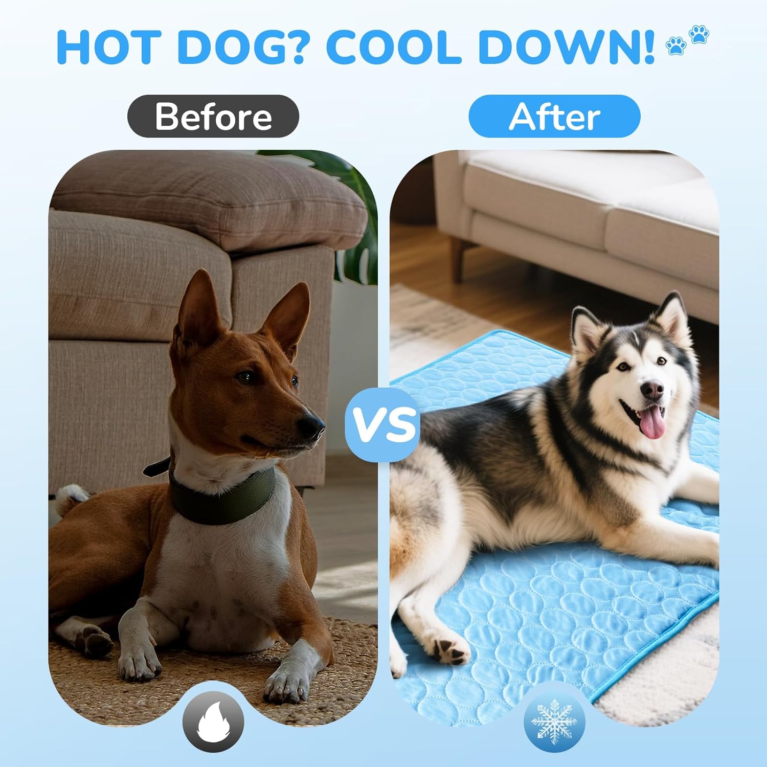 ❄【High-Tech Cooling Fiber】Made with innovative self-cooling fabric, this summer cooling mat for dogs actively absorbs heat to regulate temperature, delivering an instant cooling sensation without moisture or electricity. The lightweight, breathable fabric is far superior to traditional damp-proof dog blanket and keeps pets comfortably cool indoors or outdoors.