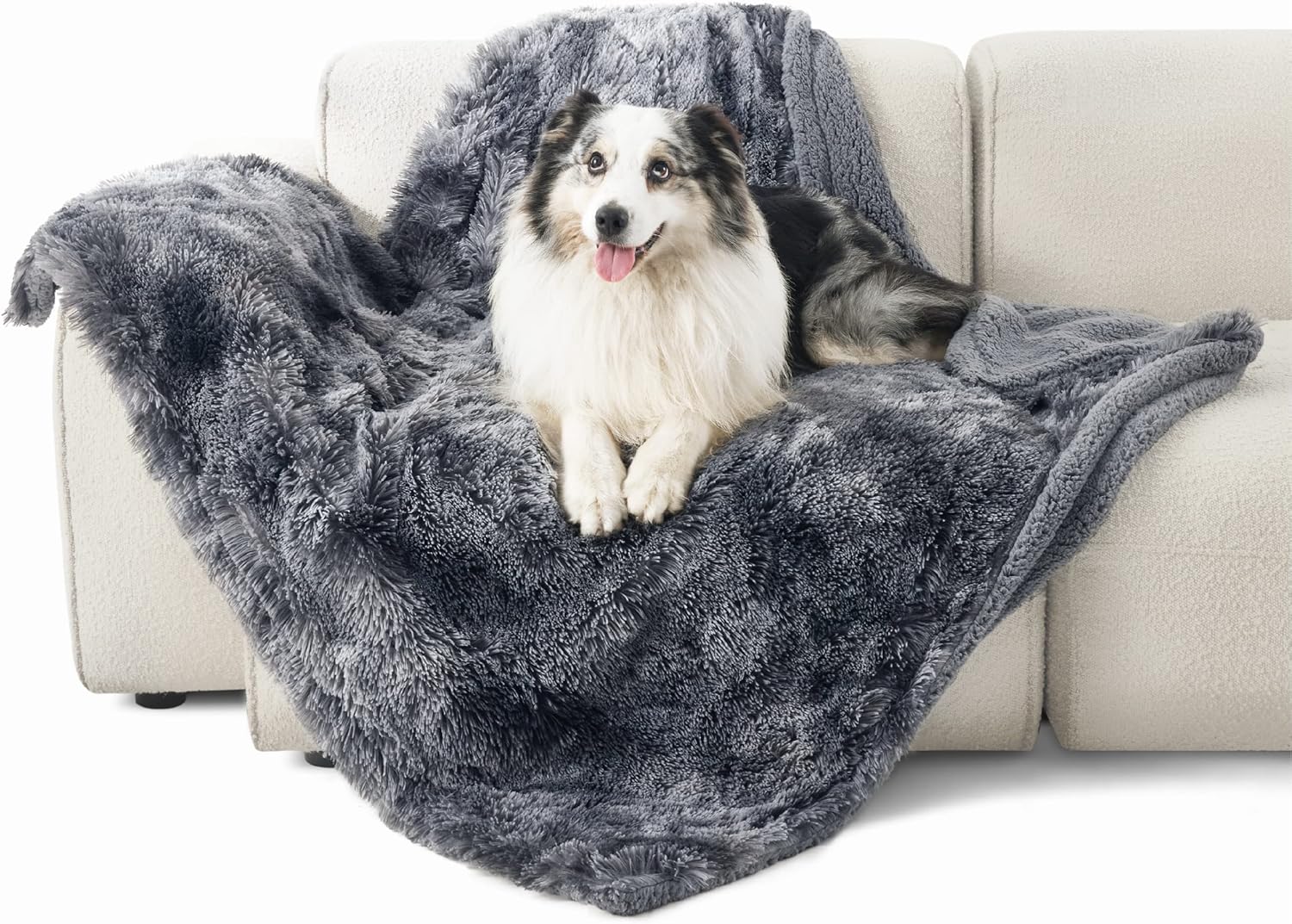 Bedsure Waterproof Dog Blankets for Large Dogs – Cat Blanket for Couch Protector Washable Long Faux Fur,Calming Soft Reversible Throw Furniture Protection for Puppy Pet, 50″x60″, Tie-dye Grey