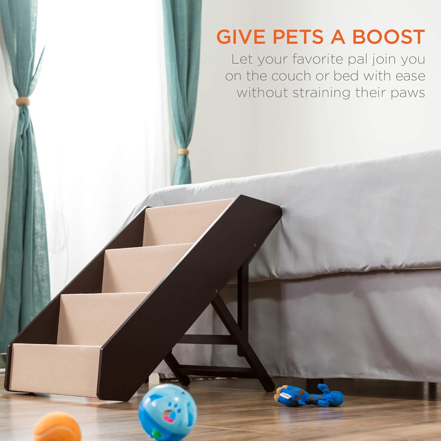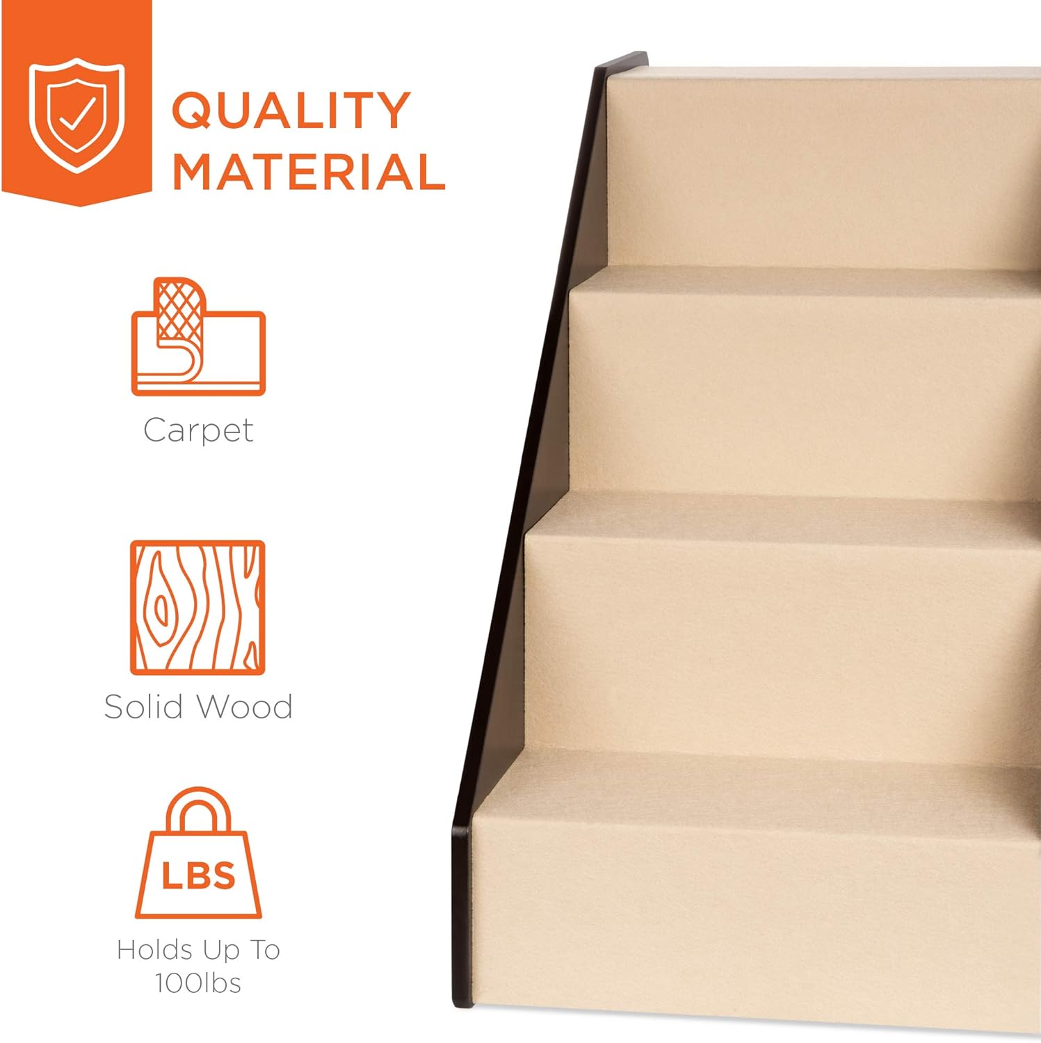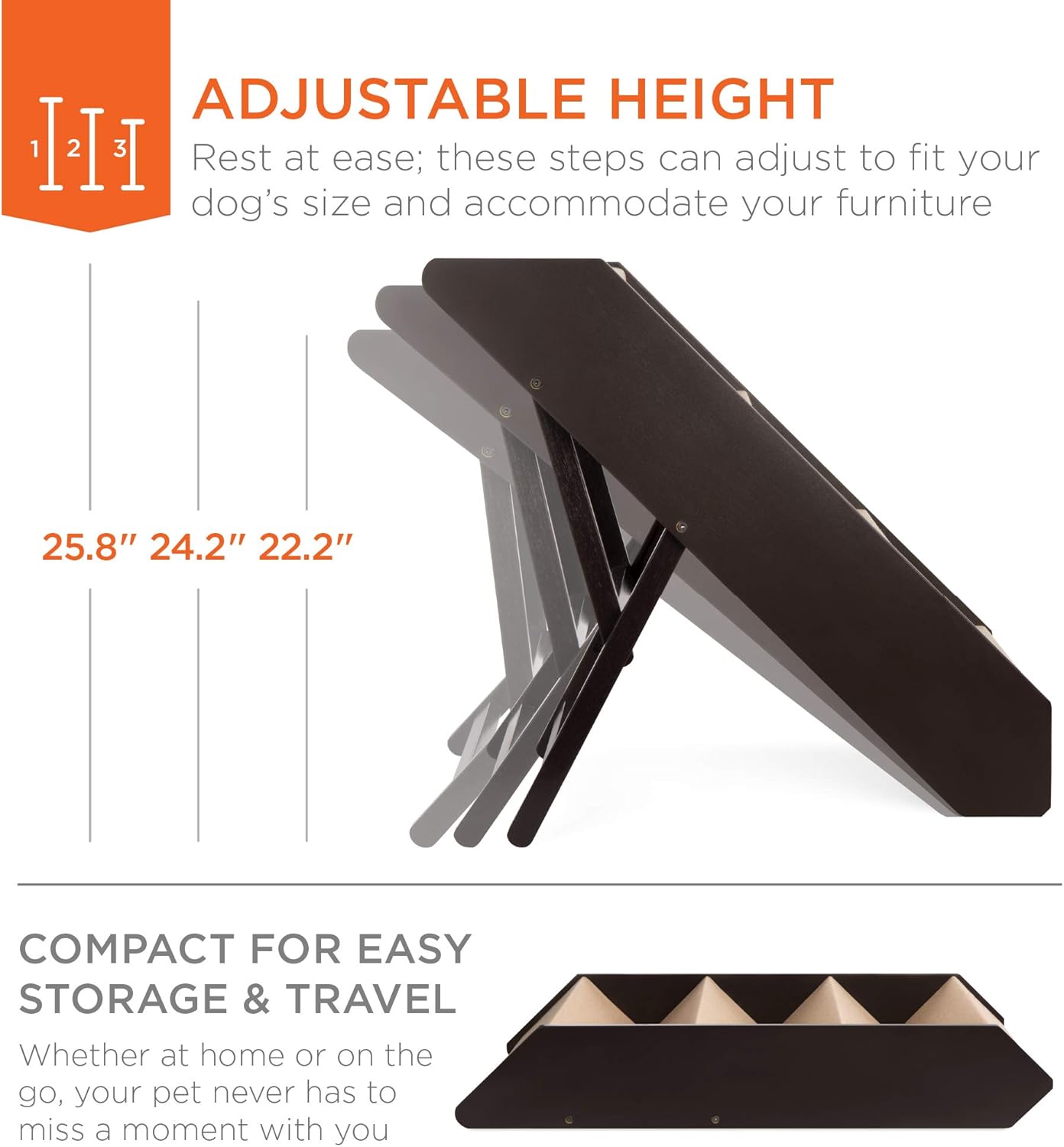 Best Choice Products 4-Step Foldable Adjustable, Non-Slip Wide Wooden Pet Stairs for Living Room, Bedroom, Dog & Cat Sizes Small, Medium, Large w/Carpet, No Assembly, Ideal for Injured, Elderly Pets