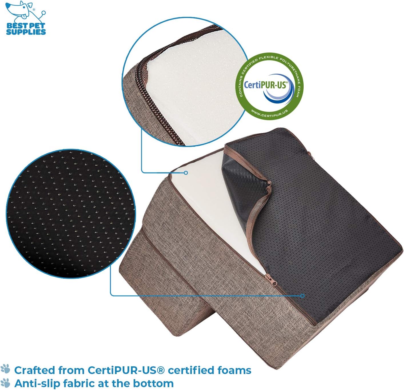 Best Pet Supplies Dog Stairs & Steps – Foam Steps for Small Dogs & Cats, Non-Slip Indoor Balanced Pet Step Support, Dog Ramp, No Assembly, Brown Linen, Foldable 2-Step (12-inch Height)