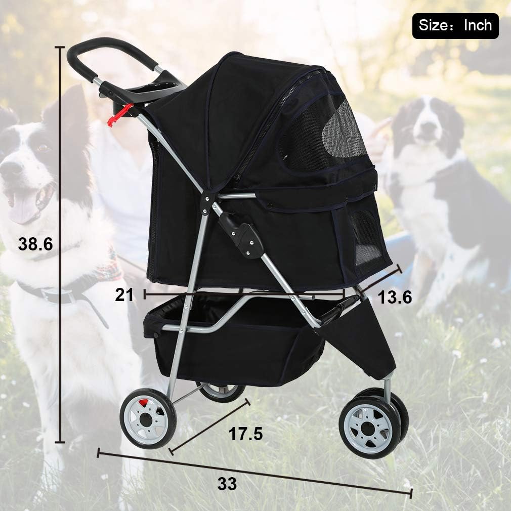 BestPet | 3-Wheel Pet Stroller | Dog and Cat Stroller | Breathable Mesh | Lightweight Travel Carrier | Waterproof & Foldable Design | Storage Basket | Black | for Daily Walks & Outdoor Use