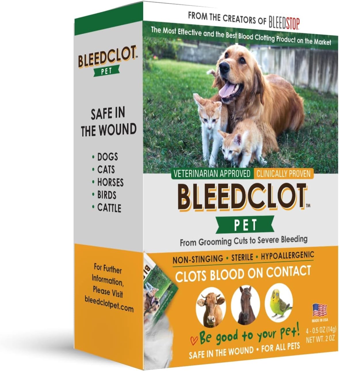 BleedClot Pet First Aid Blood Clotting Powder | The Best for All Animals to Stop Bleeding, Guaranteed | for Minor Cuts and Severe Arterial Bleeding | from The Makers of BleedStop (4 Pouches (0.5 oz))