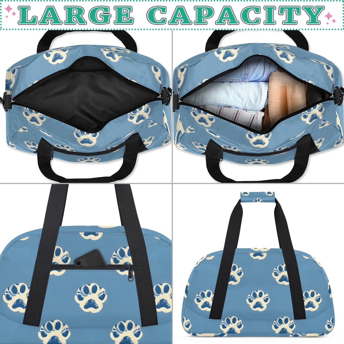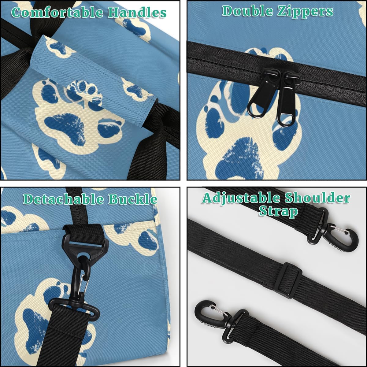 Blue Dog Paw Pattern Gym Travel Duffle Bag for Boys – Gymnastics Sports Dance Bag with Front Zipper Pocket for School Practice or Overnight Travel Weekender Sleepover Tote Bag Dog Print