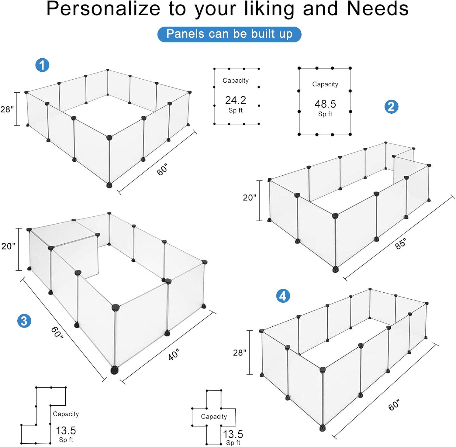 BRIAN & DANY Dog Playpen, Portable Plastic Pet Playpen, Clear Dog Play Pen Acrylic Rabbit Playpen Indoor, 12 Panels Puppy Fence and Guinea Pig for Small Animals- 28 X 20 Inch