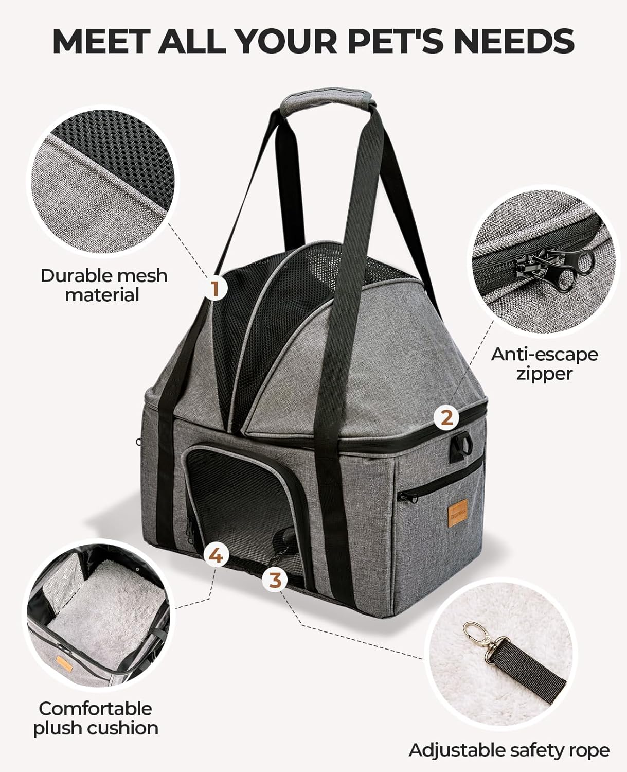 BurgeonNest Top-Expandable Large Cat Carrier, Soft Sided Cat Bag Carrier for Medium Large Pet 15 lbs, Upgrade Small Dog Car Seat, Puppy Travel Bag with Semi-Open Mode Canopy