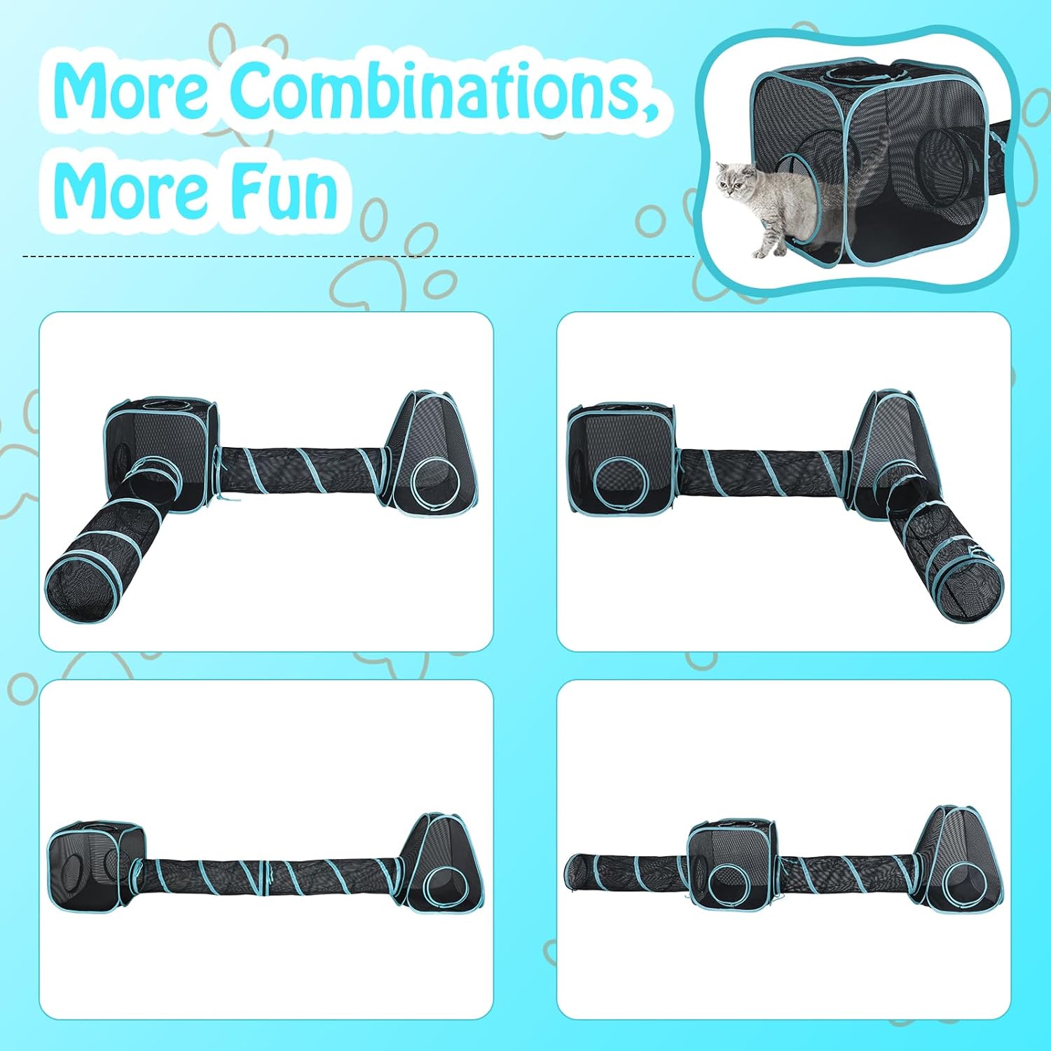 Multiple DIY Play Ways : Each tent/tunnel can be connected by resin zipper, and can be easily DIY into different shapes.cat tunnel can be connected to one or both sides of the tent for free combination, can be used together or separately.Flexible changing shapes will keep your kitten fresh