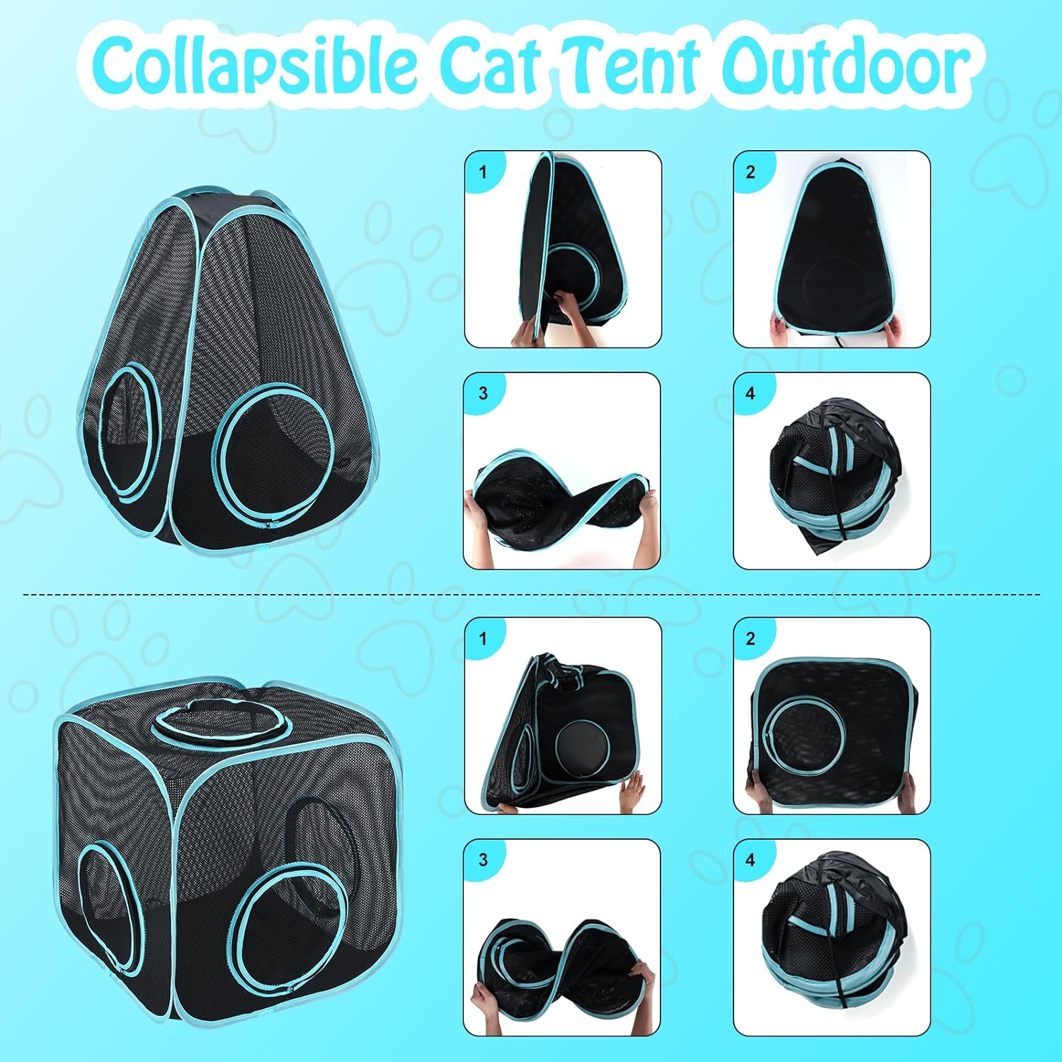 Outdoor Cat Tent: Small breathable mesh with a 360 degree view, allows your pet to relax and be close to nature in your safe sight, breathe fresh air and enjoy the outdoors in the sun. And protect them from mosquitoes, birds and other animals. At the same time, give them enough space to stretch their legs.Indoor, the tent is ideal for kittens, isolating an injured pet, or introducing a new pet