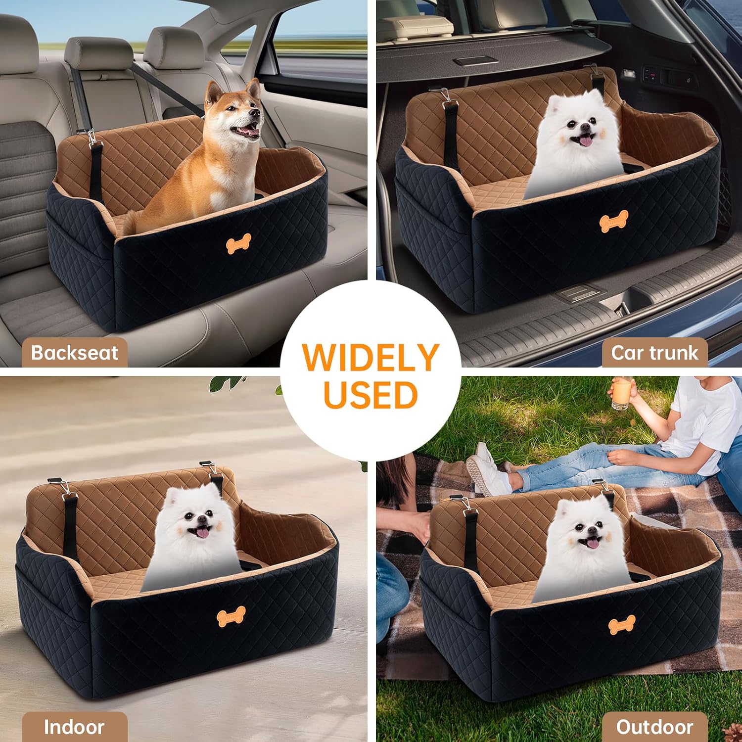 MULTI-FUNCTIONAL USE: The dog car seat is not only suitable for use in the car, but can also be used outdoors or at home as a dog bed or dog sofa. In addition, there are 2 large pockets on both sides of the dog car seat for storing your dog’s treats, toys, essentials and more.