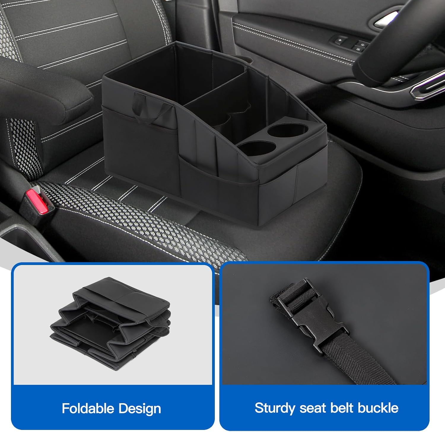 【Good Organizer for working necessities】Suitable for front seat. This Organizer has Loads of pockets. Sturdy enough for use; purse, tissue box, hand wipes, weekly planner/notebooks, pens/writing utensils, office supplies, hand sanitizer, etc. Non-Slip Design and easy to install. It is foldable, you can fold it up when you don’t need it.