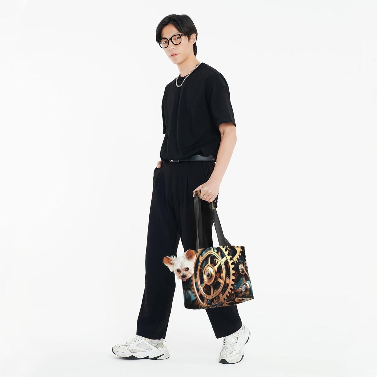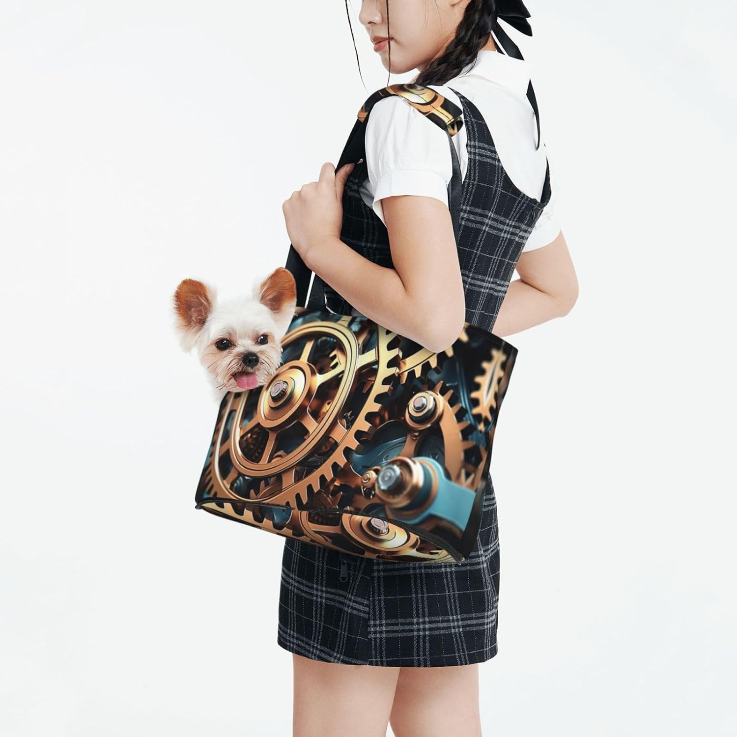The Cool Steampunk Gears Pet Bag Can Also Be Used As An Ordinary Tote Bag. The Large Capacity Space Can Carry Items Such As Notebook Computers. At The Same Time, It Can Also Be Used As A Bag For Carrying Pets. One Bag Is Dual-Purpose. It Is A Good Choice For You Or With Your Dog To Go Shopping, Walking, Traveling And Hiking Together.