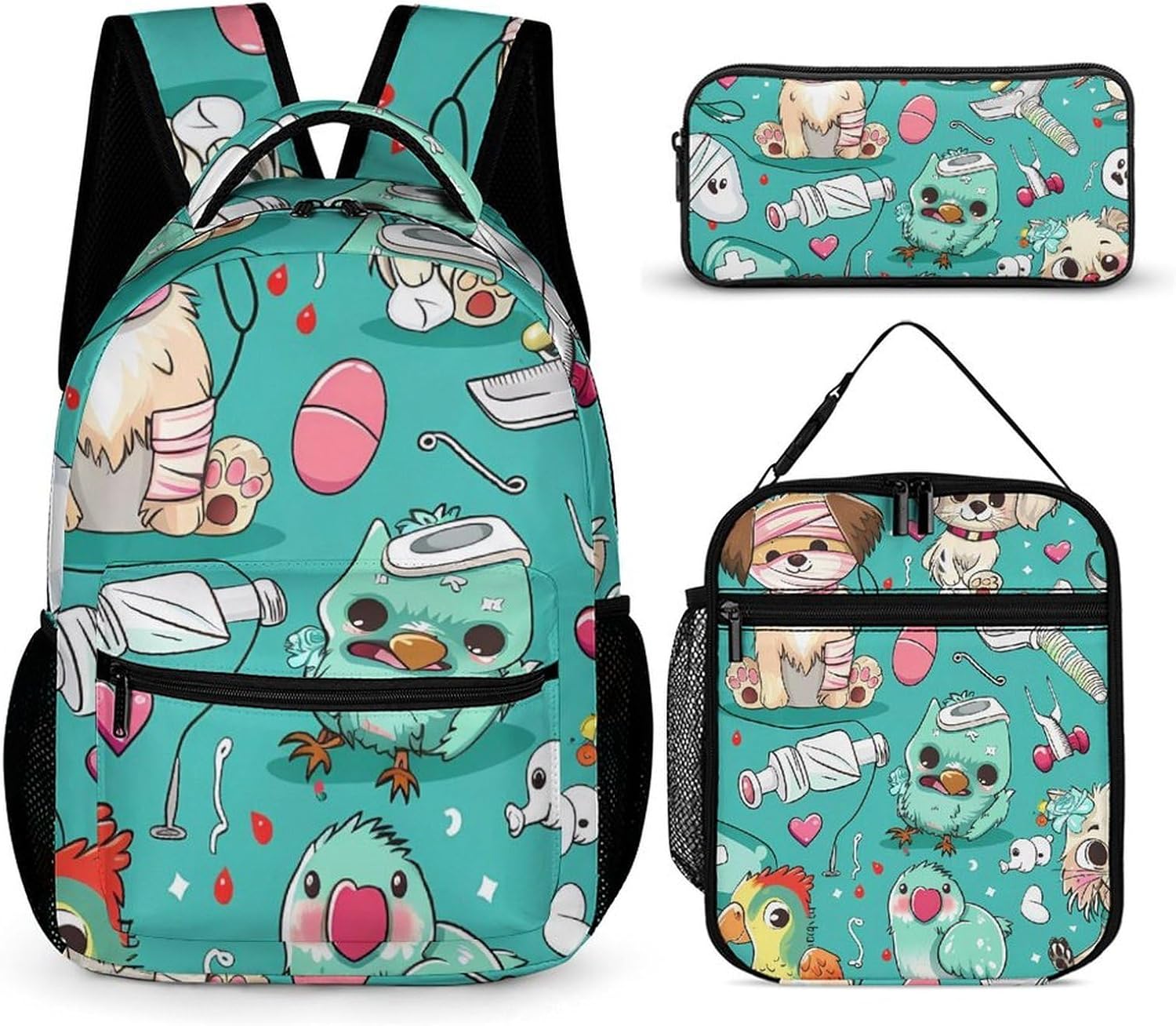Cartoon Puppy Pet Hospital Funny Backpack Set with Lunch Bag And Pencil Case Lightweight Bags Sets