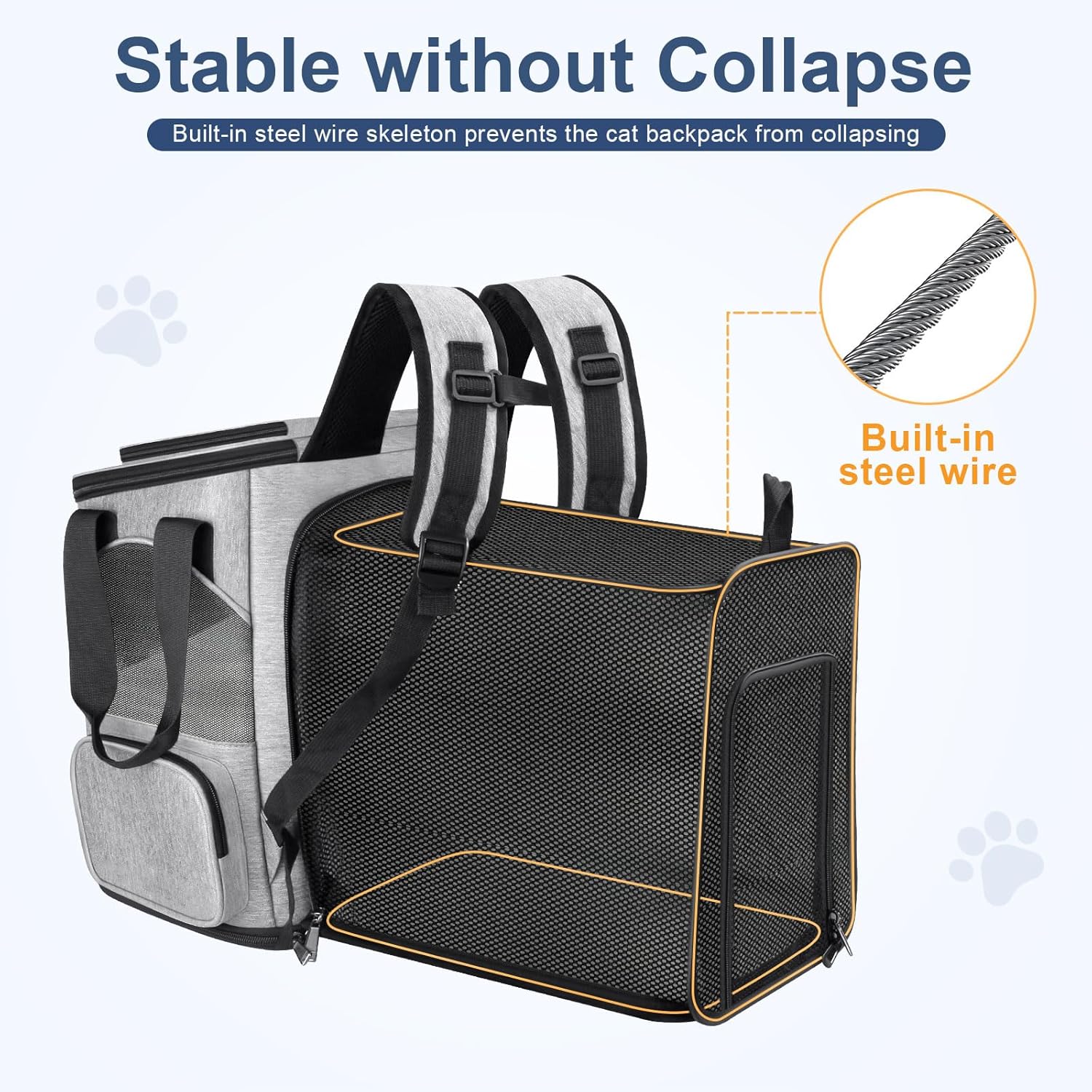 Cat Safety Design: The cat backpack for large cats comes with a double-sided cushion that keeps your cat comfortable and supports the backpack to prevent deformation, and the built-in safety leash prevents your cat from accidentally escaping while traveling