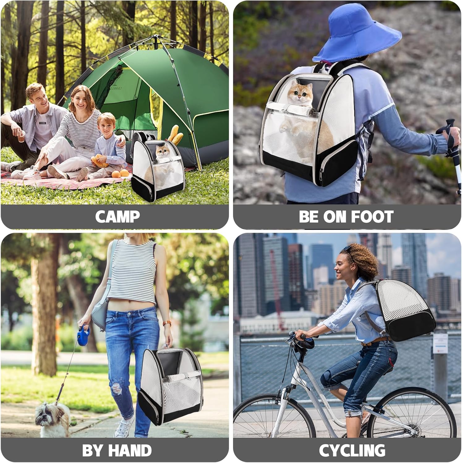 Ventilated Mesh and Comfortable: Three-sided PVC mesh design ensures excellent air circulation and visibility, you can clearly view the status of pets inside the bag, and pets can also observe the outside. And this cat carrier backpack is firmly structured, providing ample room for your pet to move around