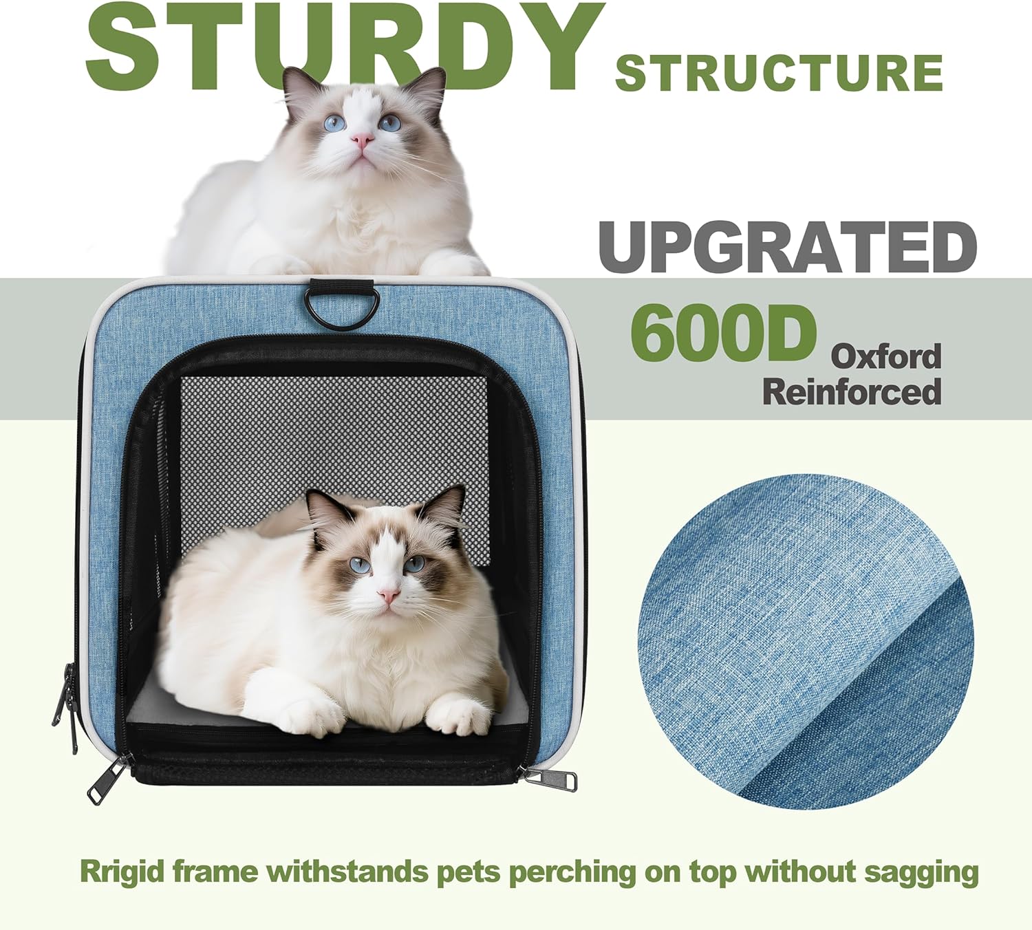 Sturdy, Collapse-Proof Structure – Rigid frame supports pets sitting on top of this kennel – no sagging even with 10lb Pomeranians or Maltese exploring